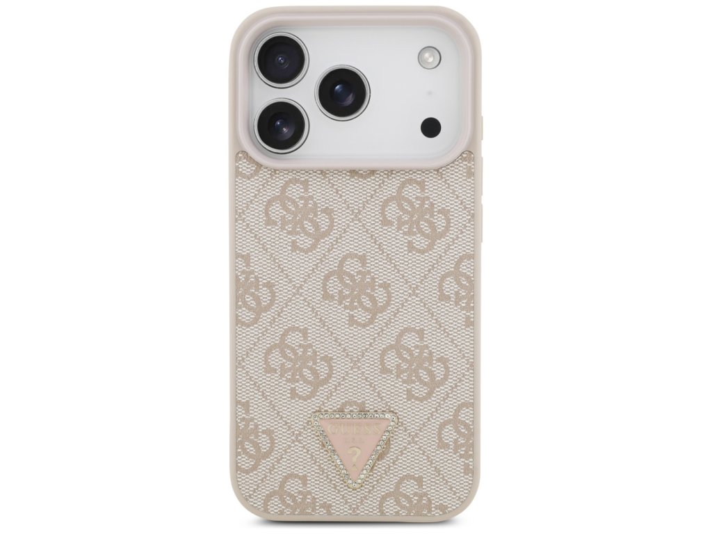 Guess – Leather 4G Triangle Strass MagSafe obal na iPhone 17 Pro Max – ružový