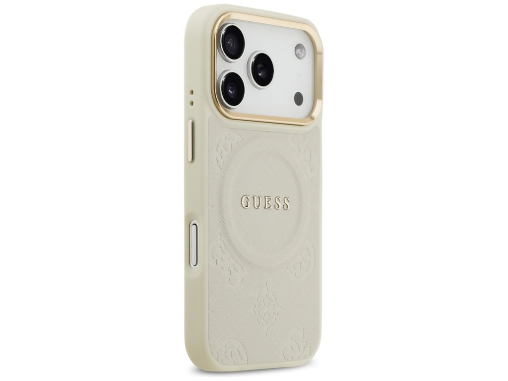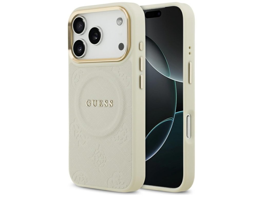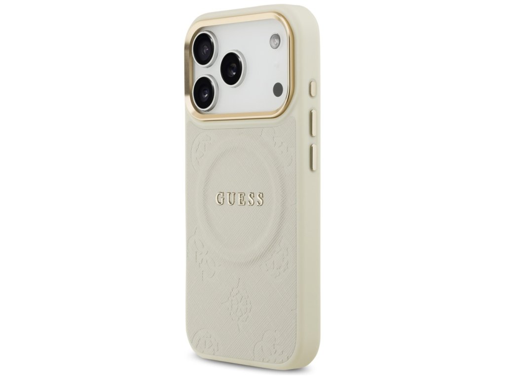 Guess – Peony Hot Stamp MagSafe obal na iPhone 17 Pro – béžový