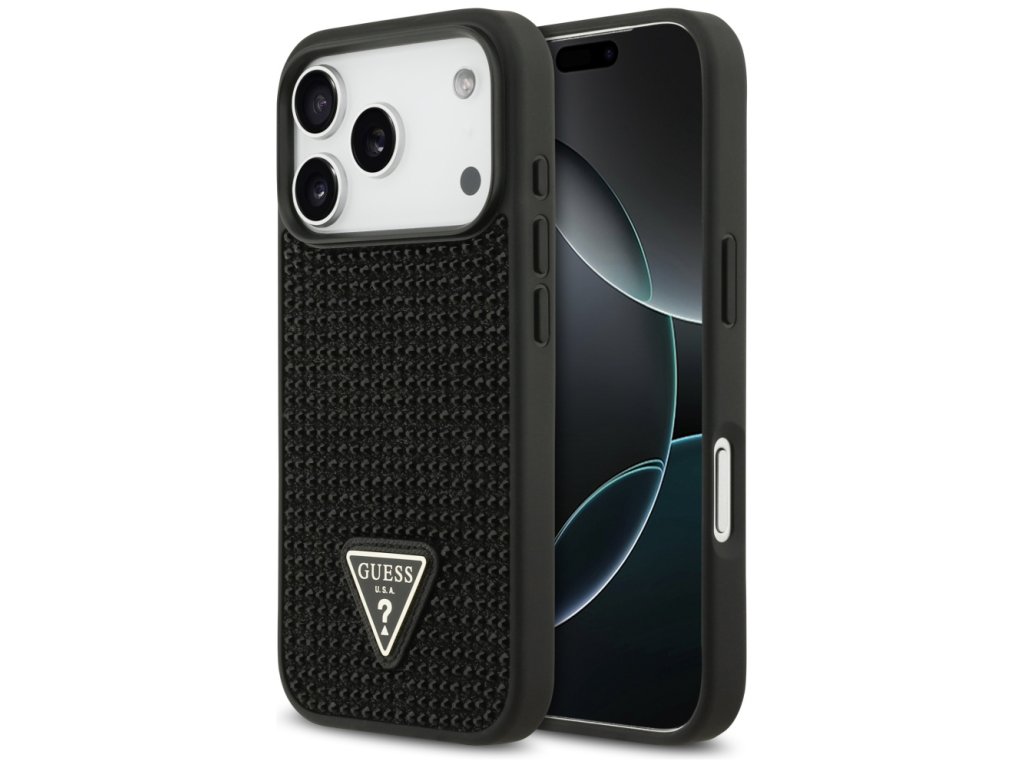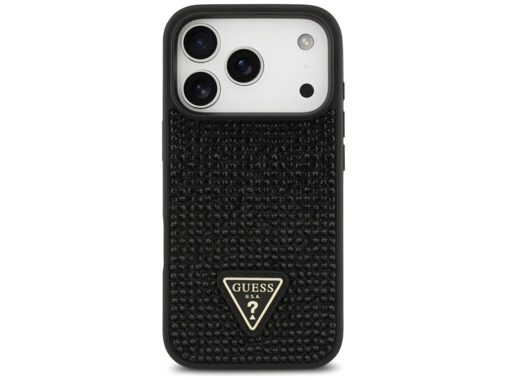 Guess – Rhinestone Triangle Logo obal na iPhone 17 Pro – čierny