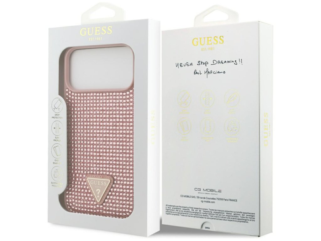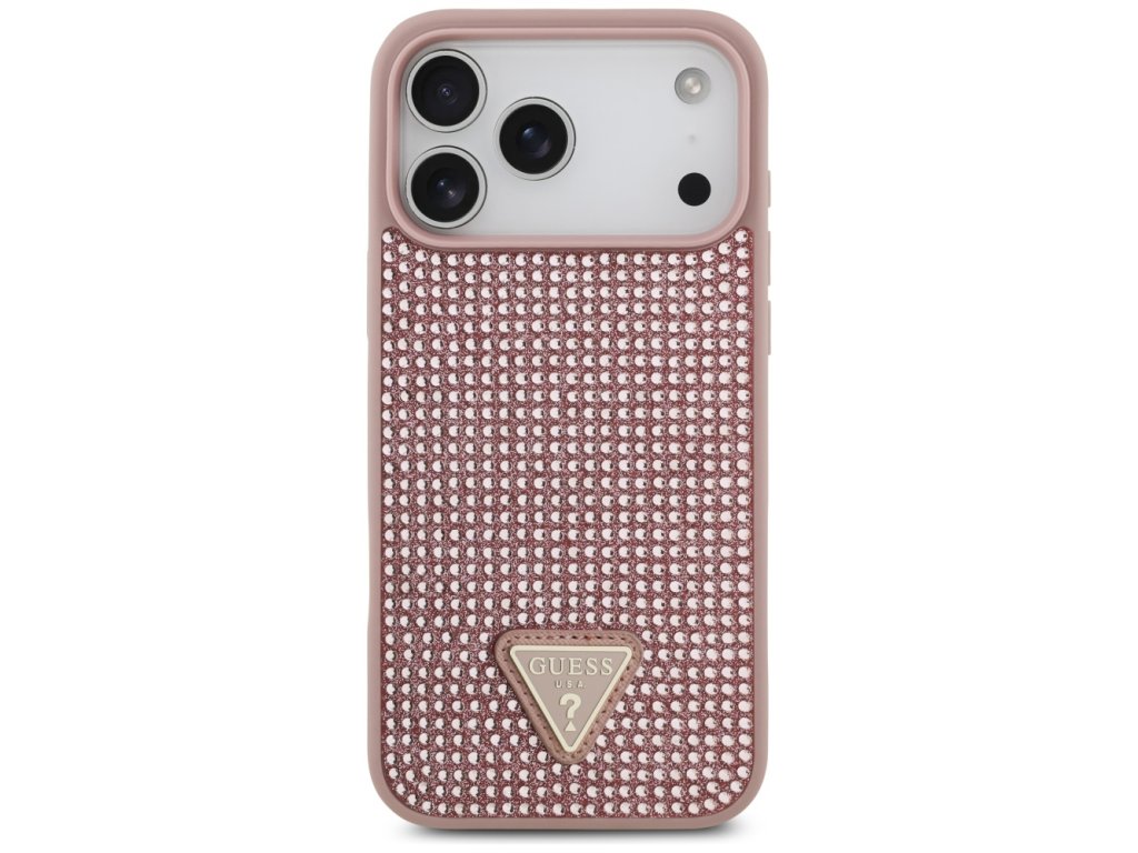 Guess – Rhinestone Triangle Logo obal na iPhone 17 Pro – ružový