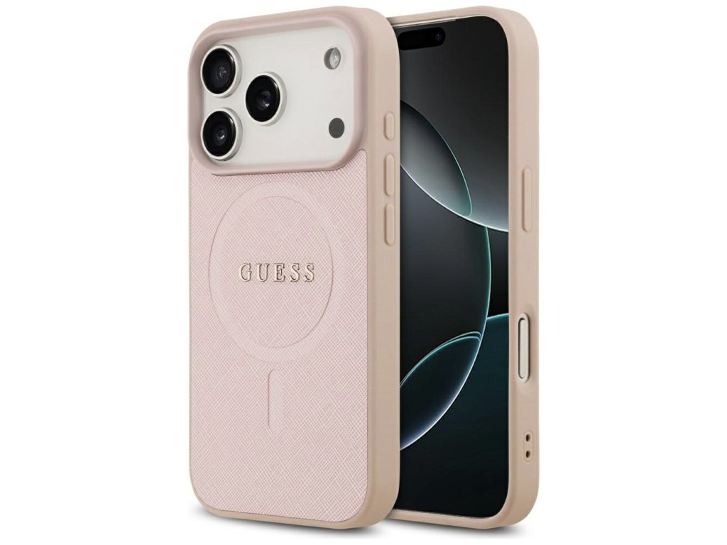 Guess – Saffiano Classic Logo MagSafe obal na iPhone 17 Pro Max – ružový