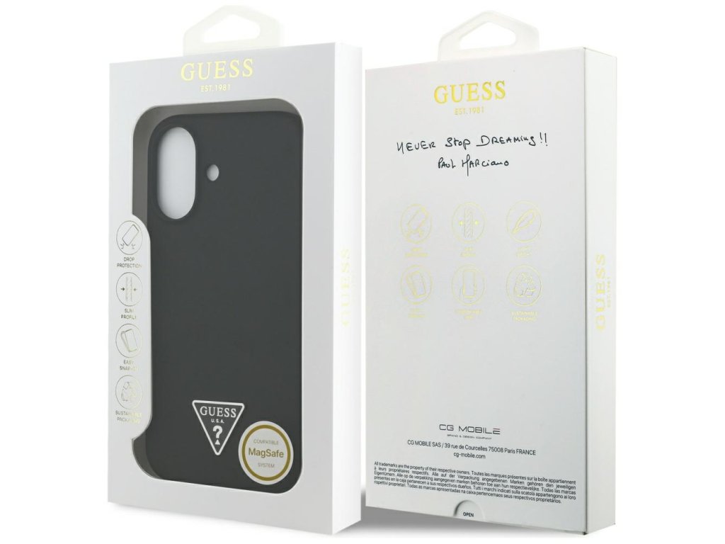 Dostupný v rôznych živých farbách, tento obal ponúka výrazné akcenty, zatiaľ čo kovové logo Guess, elegantne umiestnené na zadnej strane, dopĺňa sofistikovaný vzhľad.