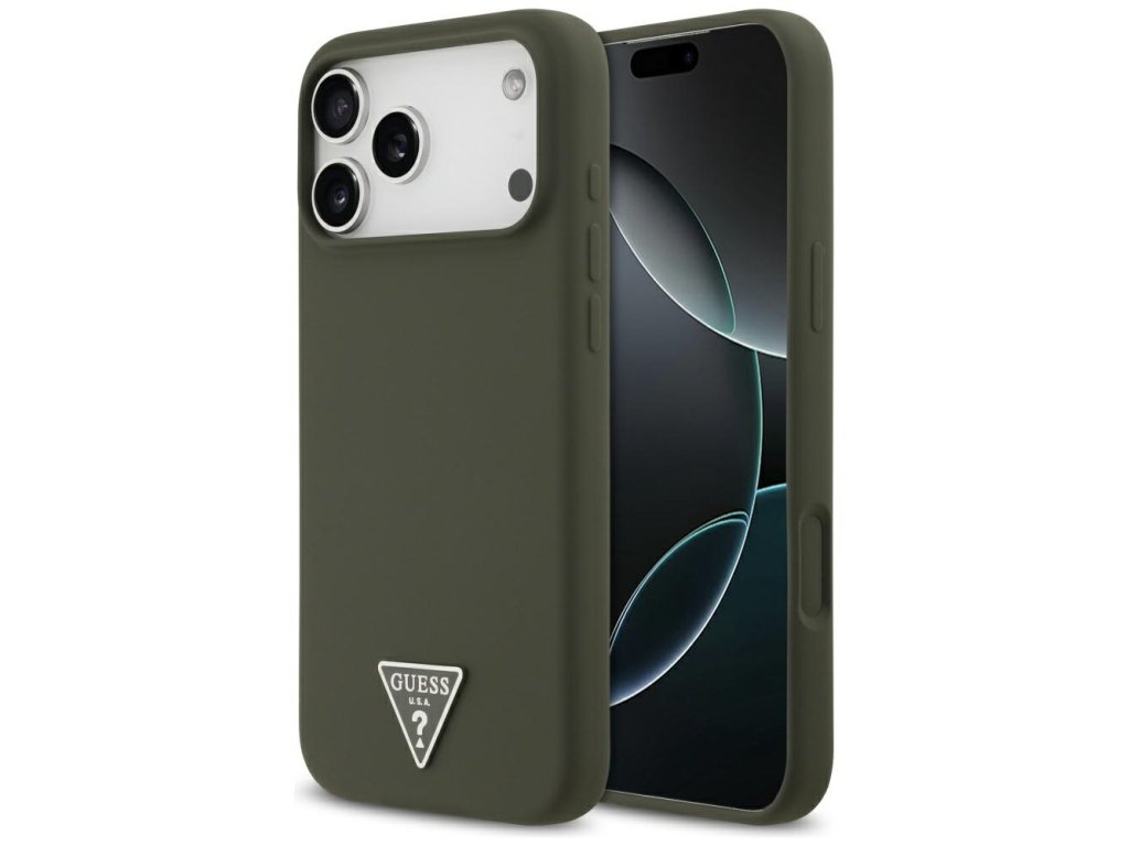 Guess – Silicone Triangle Logo MagSafe obal na iPhone 17 Pro Max – khaki