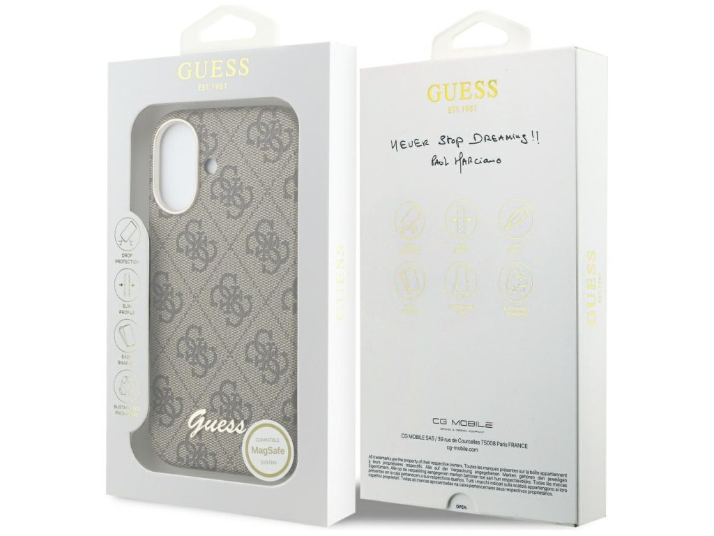 Guess - 4G Script MagSafe puzdro pre iPhone 17 - hnedé
