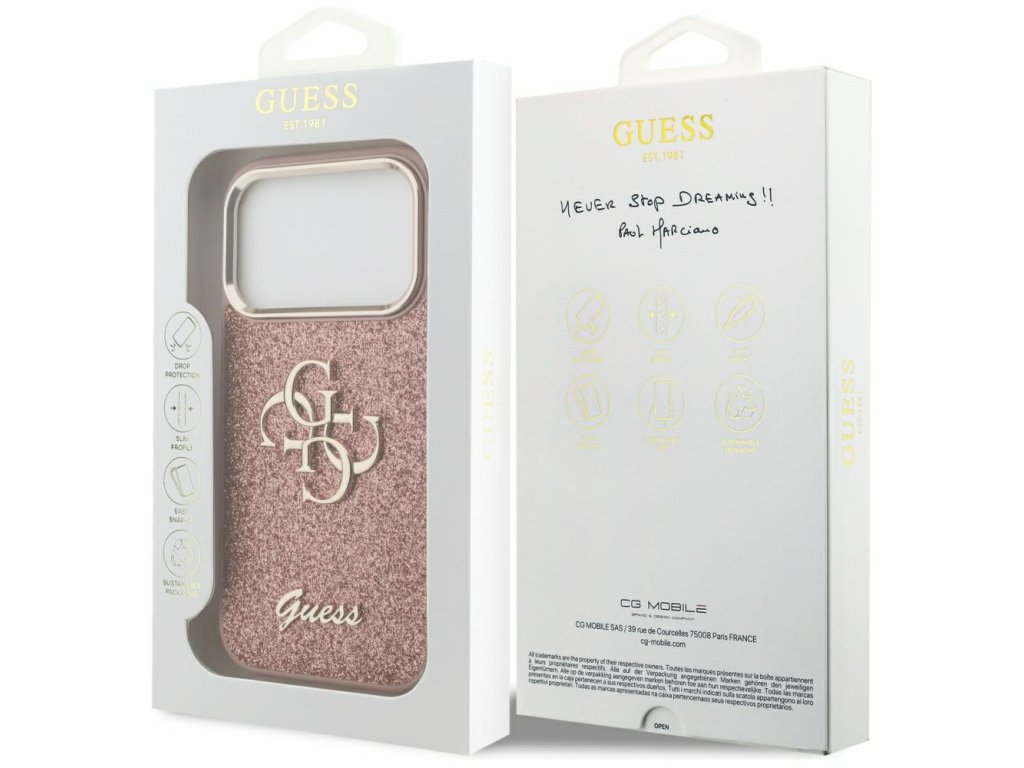 Guess - Fixed Glitter Big 4G Metal Frame (GUHCP17LHG4SGCP) - iPhone 17 Pro - Pink