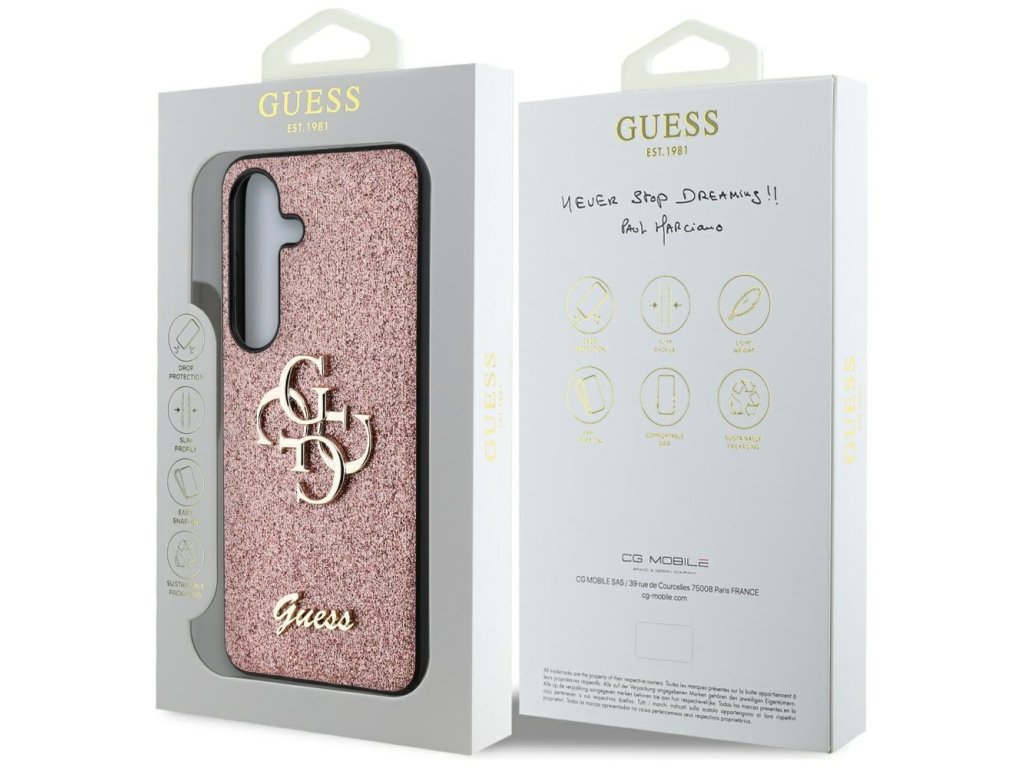 Guess Glitter Script Big 4G Logo (GUHCS25MHG4SGP) kryt pre Samsung Galaxy S25 Plus – Ružový