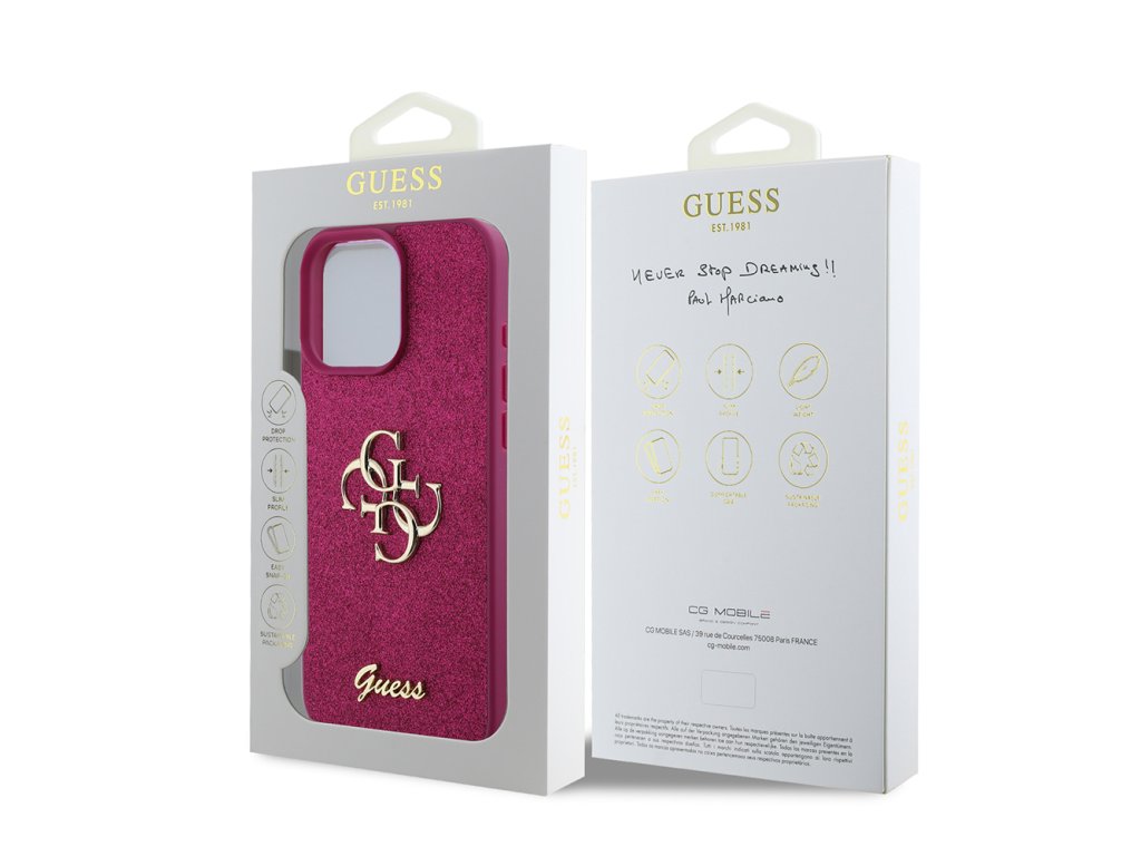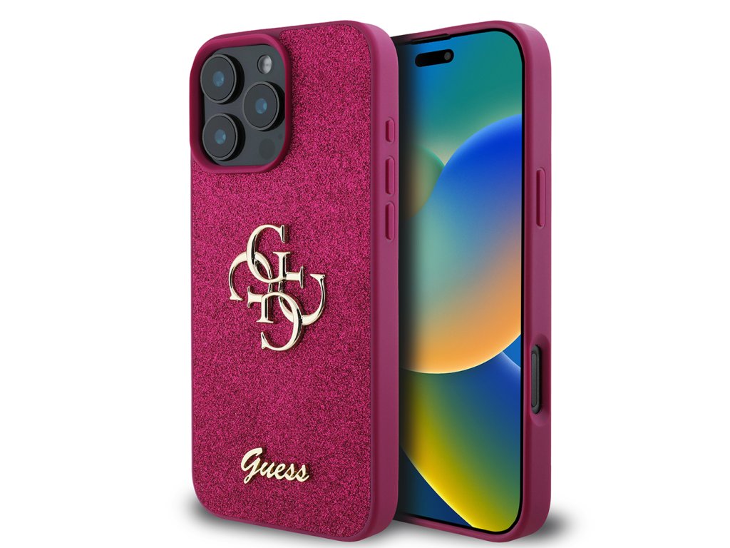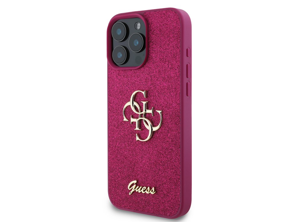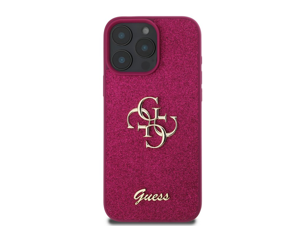 Guess - Glitter Script Big 4G puzdro pre iPhone 16 Pro - magentové