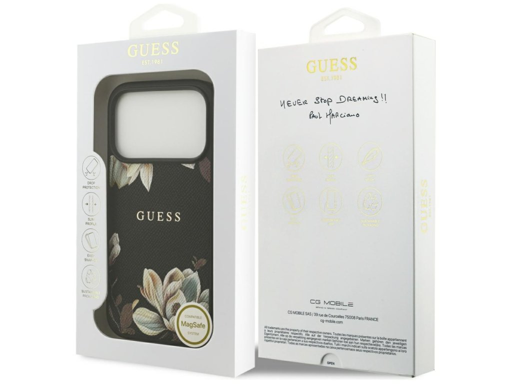 Guess - Grained Flowers MagSafe (GUHMP17LPGNMPLMK) - iPhone 17 Pro - Black