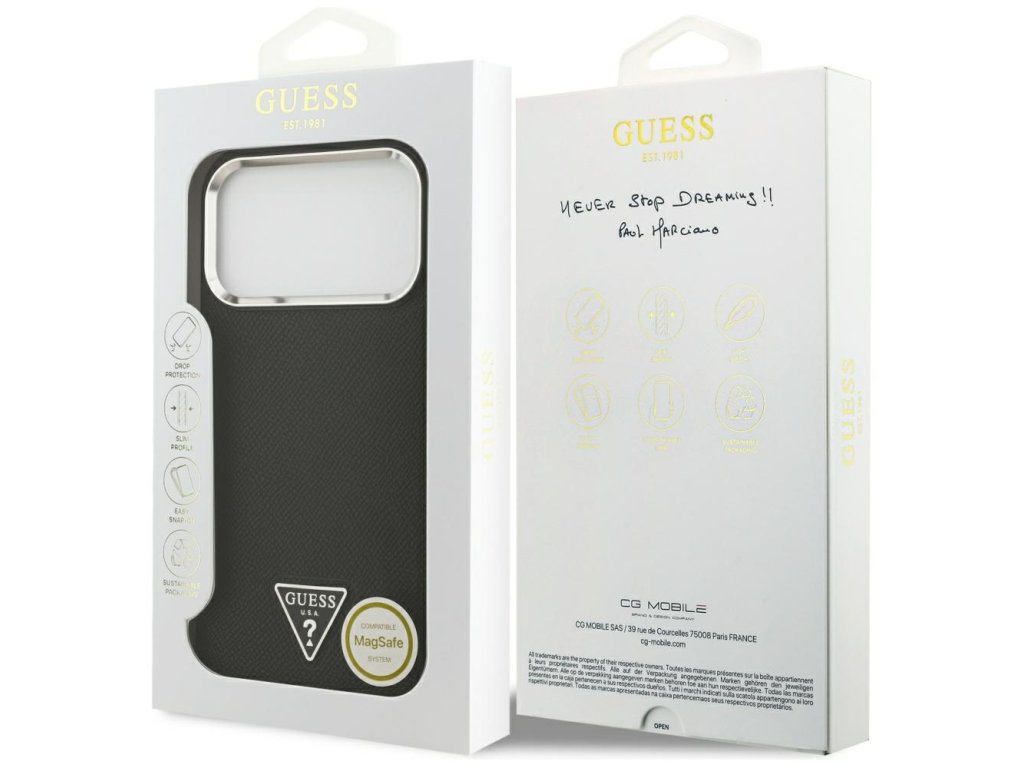 Guess - Grained Triangle Logo MagSafe puzdro pre iPhone 17 Pro Max - čierne