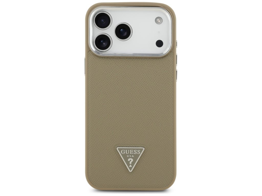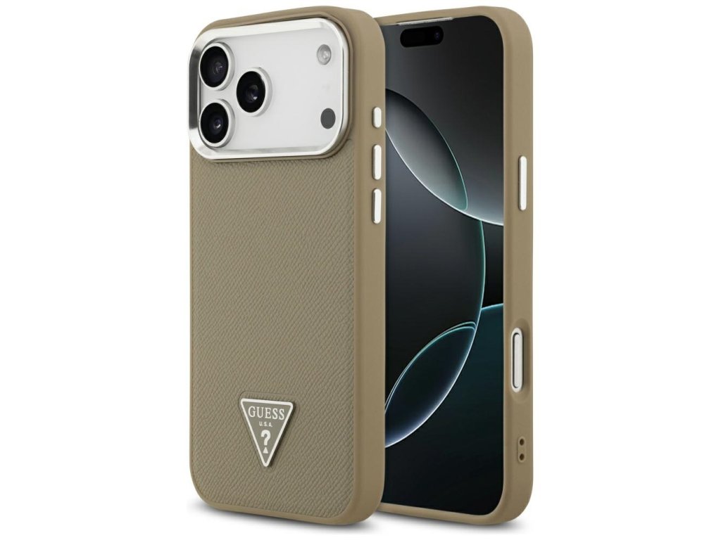 Guess - Grained Triangle Logo MagSafe puzdro pre iPhone 17 Pro Max - hnedé