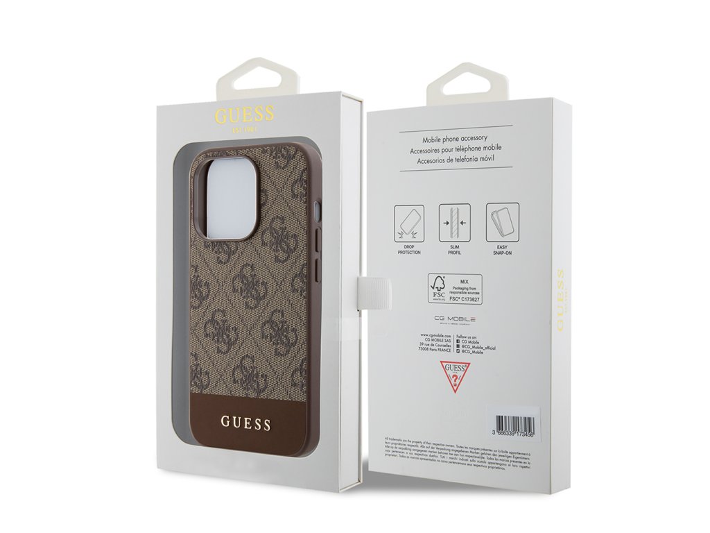 Guess - Hardcase 4G Stripe Collection kryt pre iPhone 15 Pro - hnedý