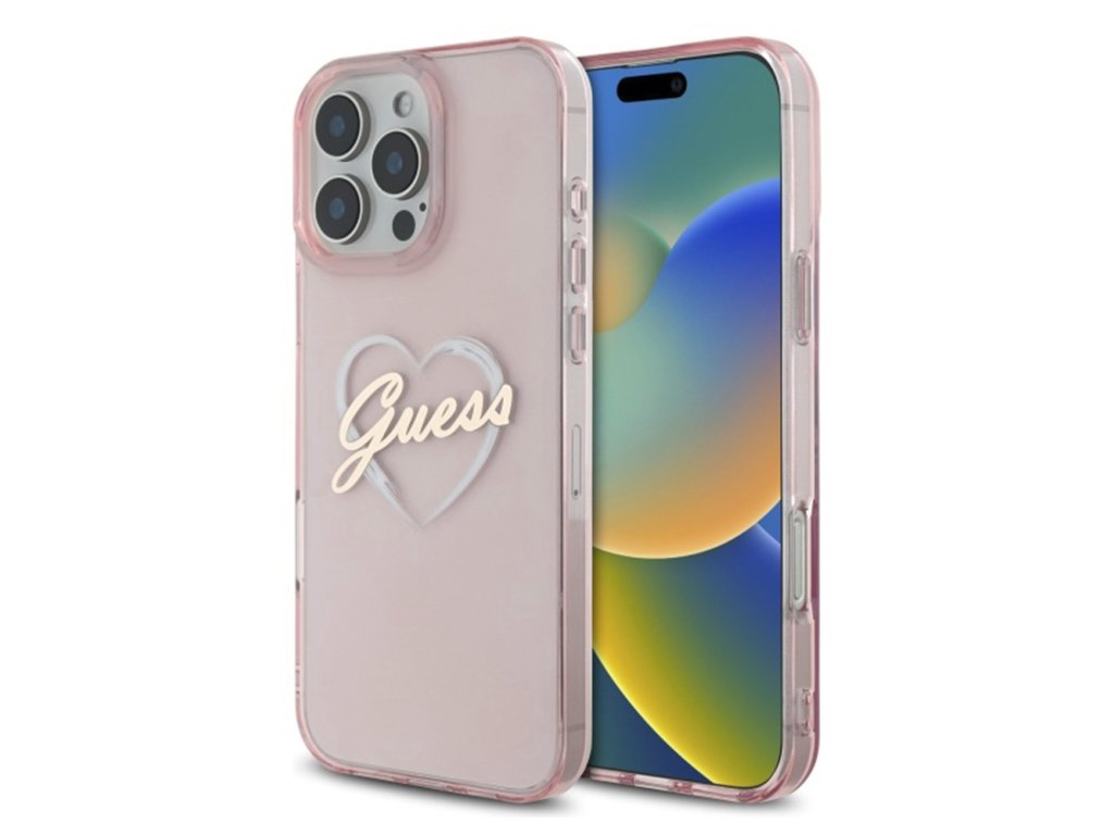 Guess - Hardcase IML Heart kryt pre iPhone 16 Pro - ružový