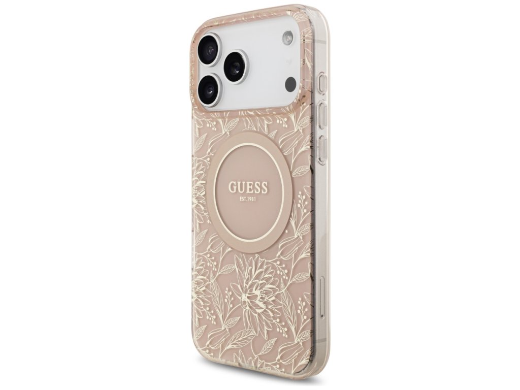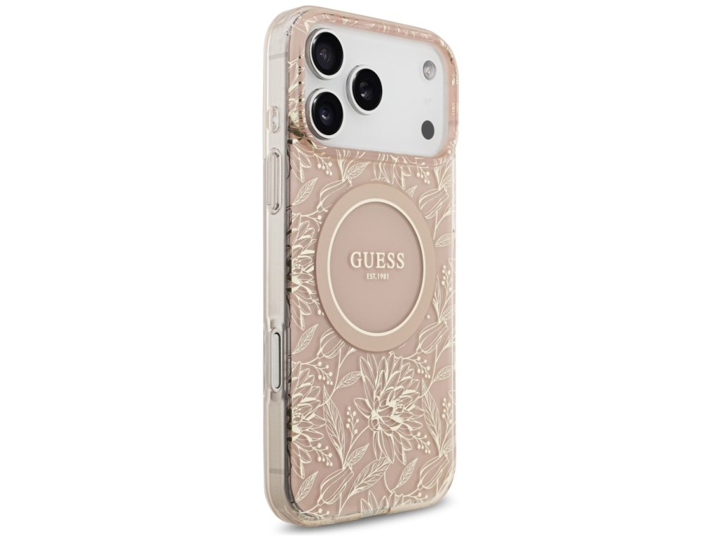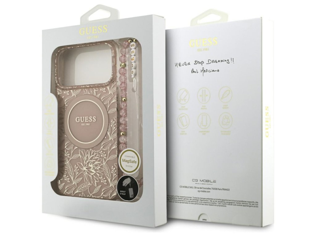 Guess - IML Flowers Allover Electroplated with Pearl Strap MagSafe (GUHMP17XHCPOFPP) - iPhone 17 Pro Max - Pink