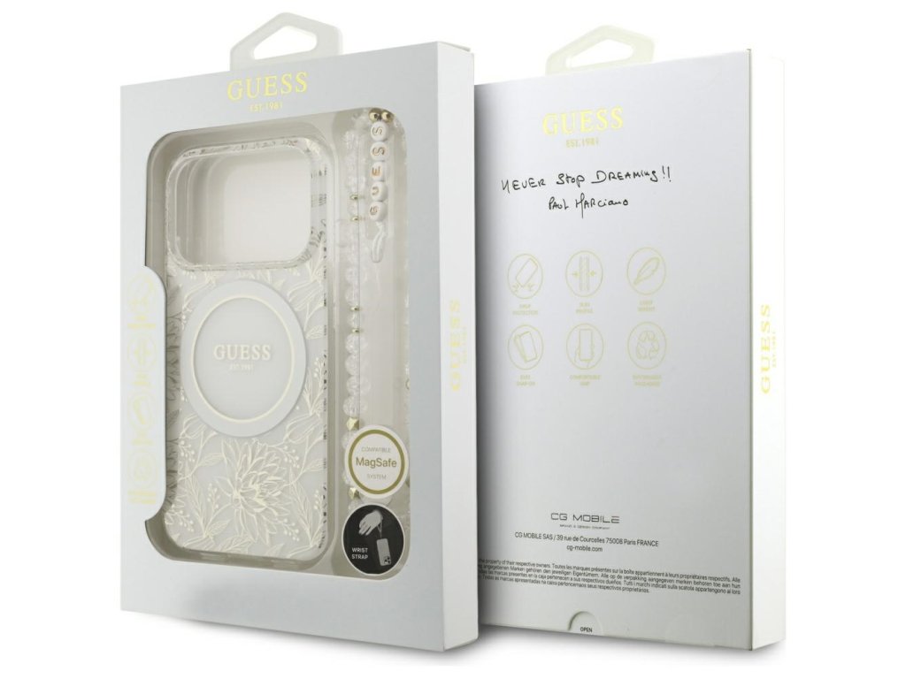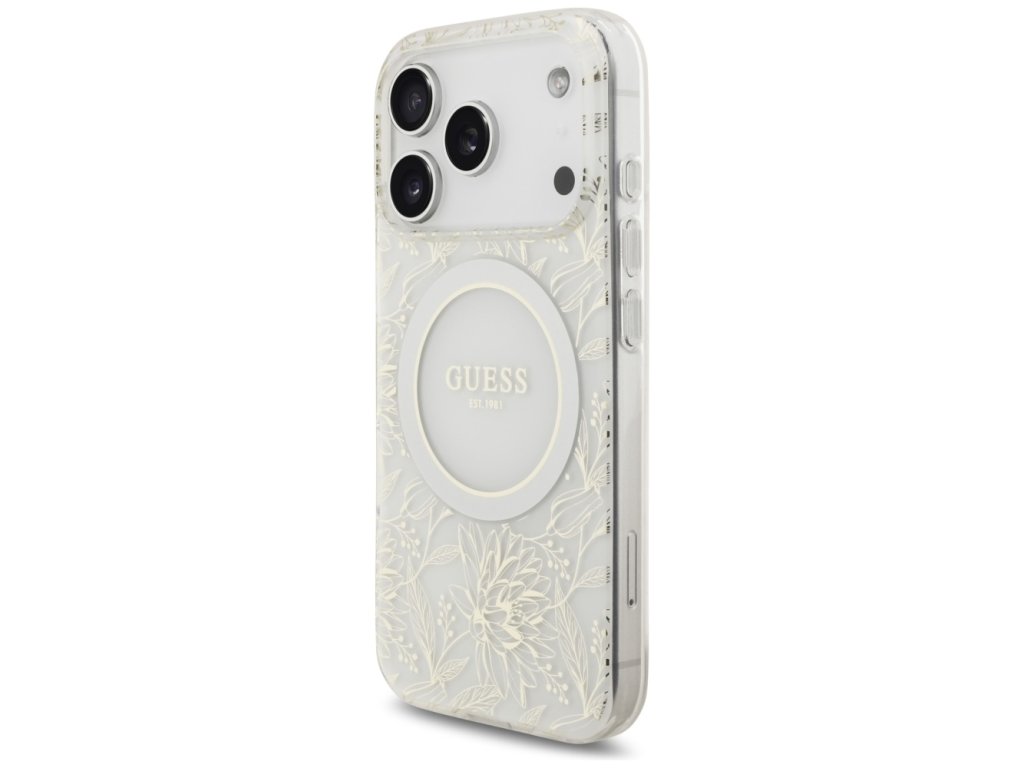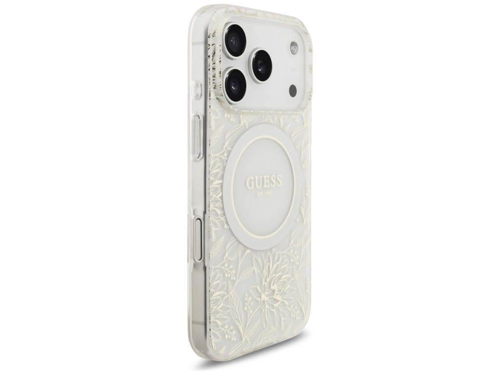 Guess - IML Flowers Allover Electroplated with Pearl Strap MagSafe puzdro pre iPhone 17 Pro - biele