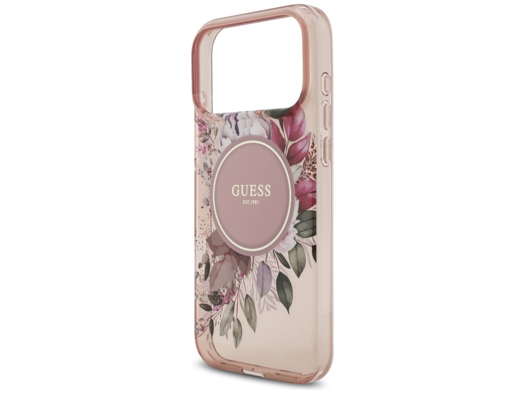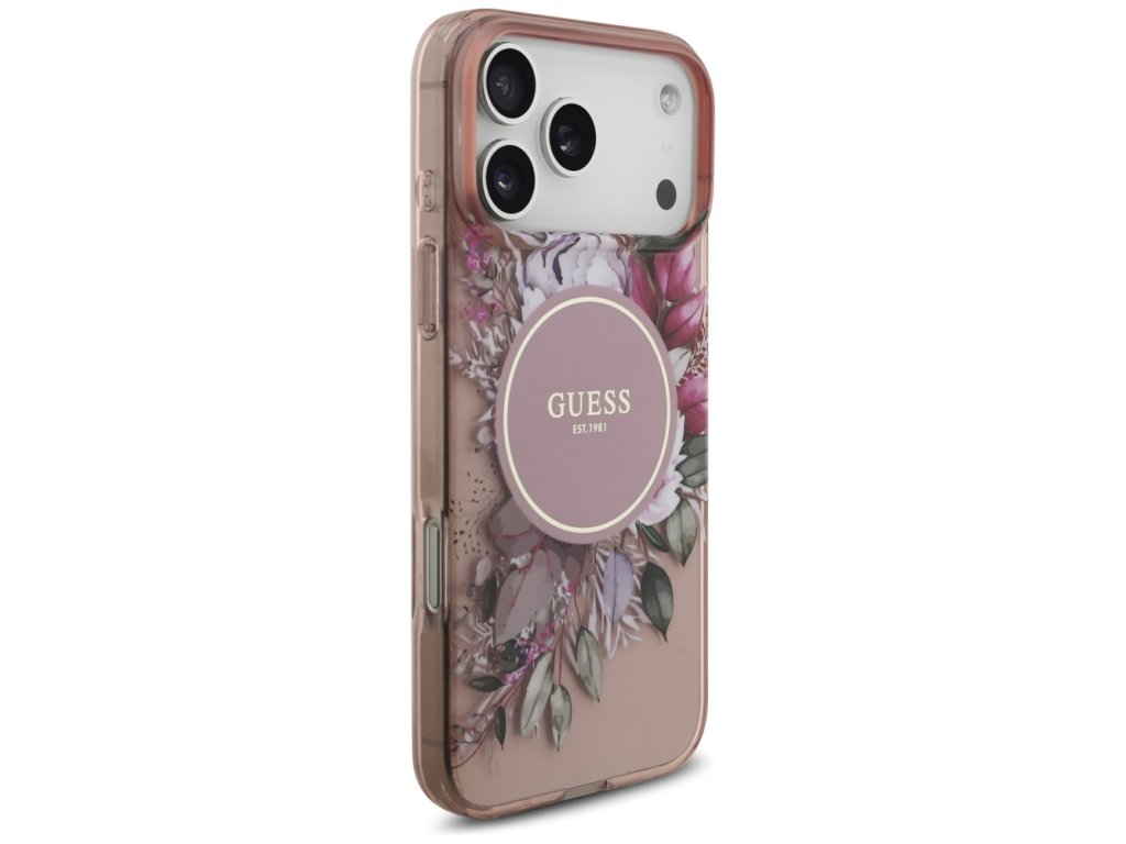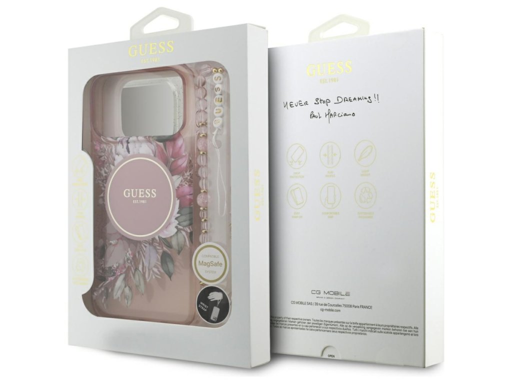 Guess - IML Flowers with Pearl Strap MagSafe (GUHMP17XHFWBRCESP) - iPhone 17 Pro Max - Pink