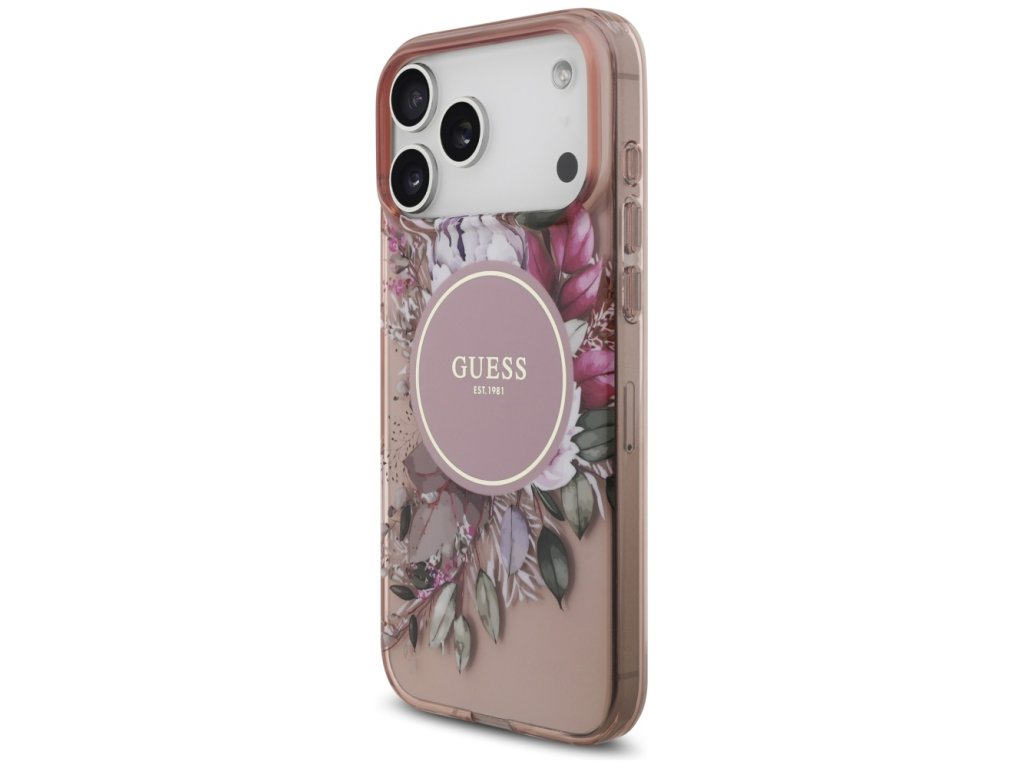 Guess - IML Flowers with Pearl Strap MagSafe puzdro pre iPhone 17 Pro Max - ružové