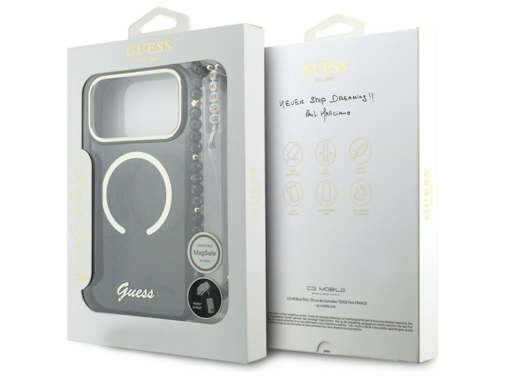 Guess - IML Glitter Script Strap MagSafe (GUHMP17X5HTGSMSK) - iPhone 17 Pro Max - Black