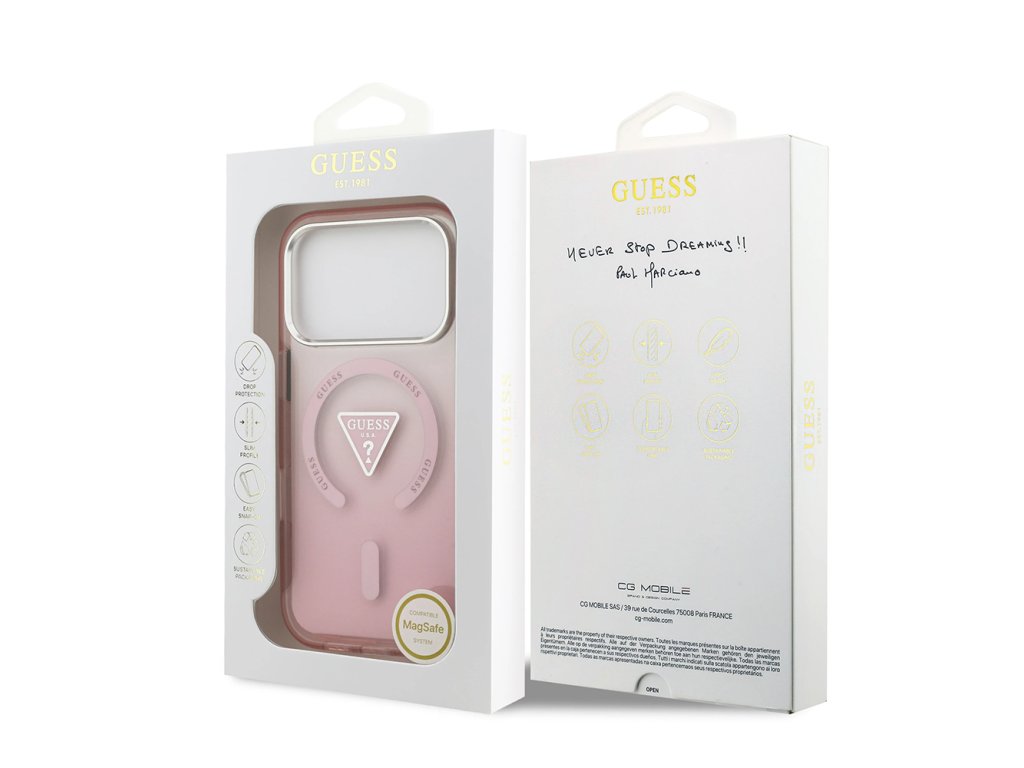 Guess - IML Gradient Triangle Logo MagSafe puzdro pre iPhone 17 Pro - ružové