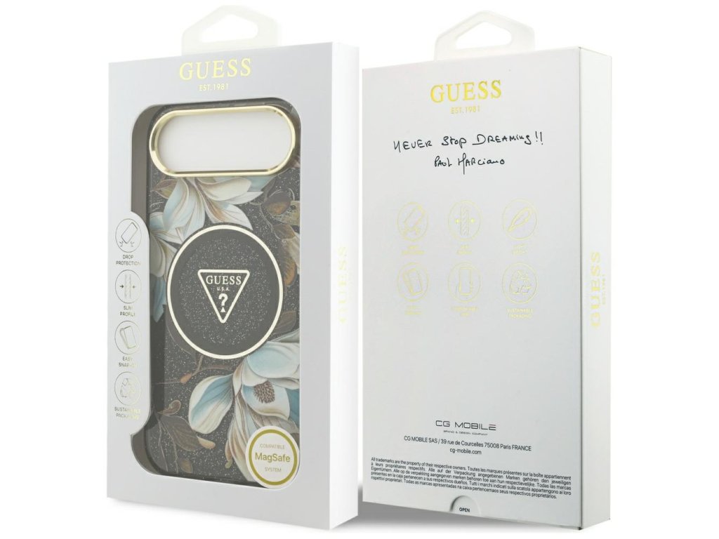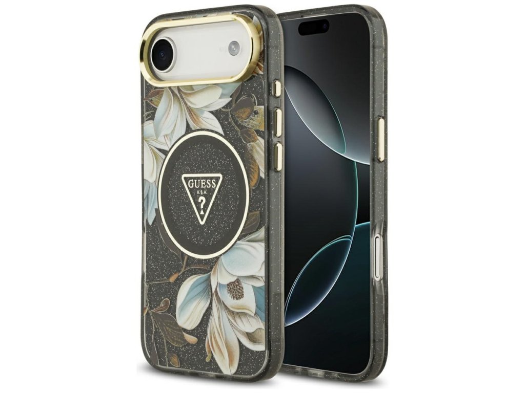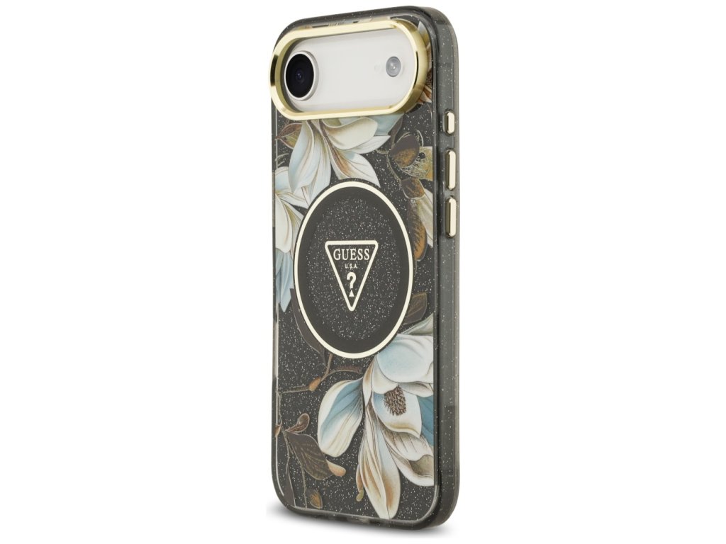 Guess - IML Metal Glitter Flowers Triangle MagSafe (GUHMP17MHFLPEDK) - iPhone 17 Air - Black