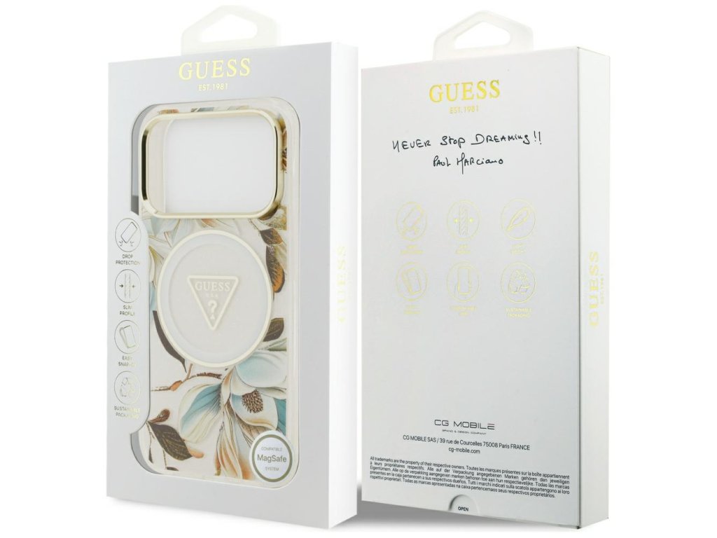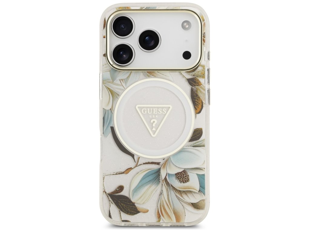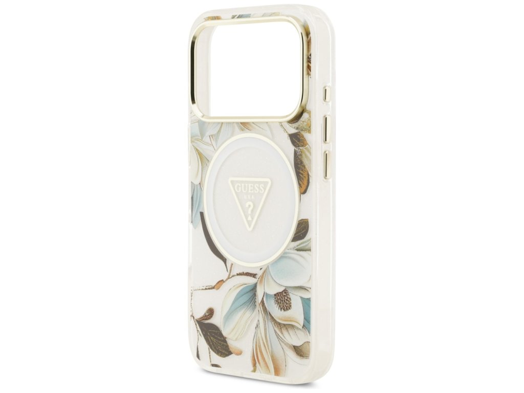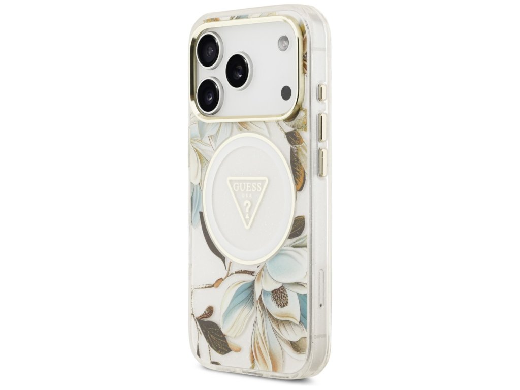 Guess - IML Metal Glitter Flowers Triangle MagSafe (GUHMP17XHFLPEDH) - iPhone 17 Pro Max - White
