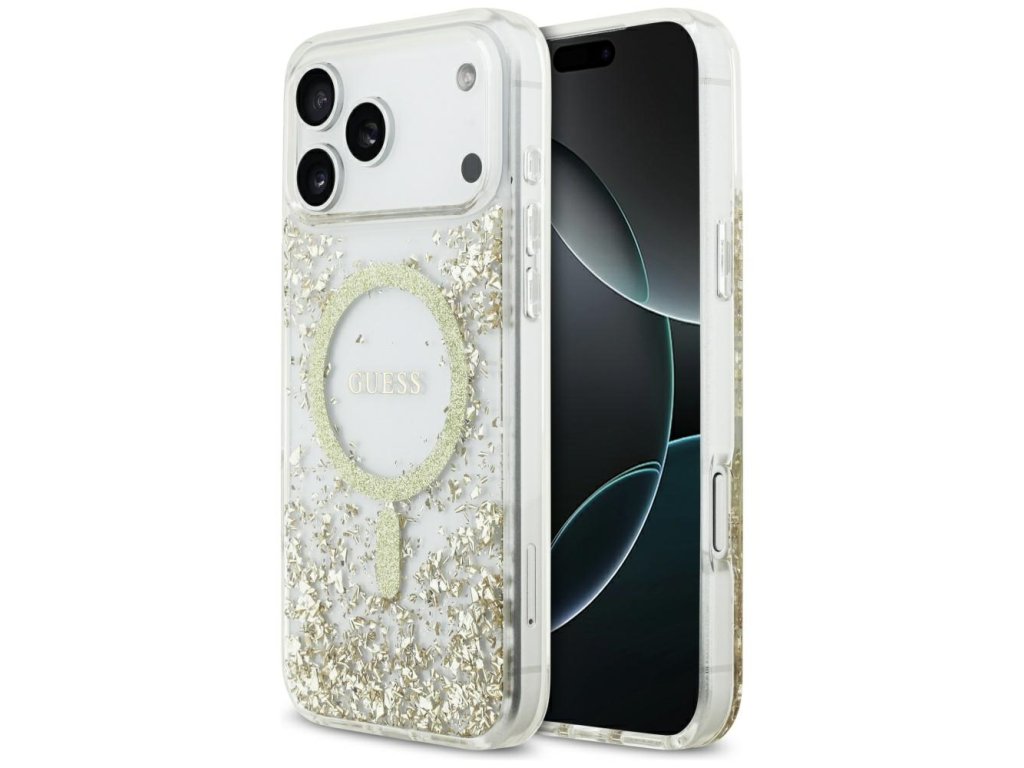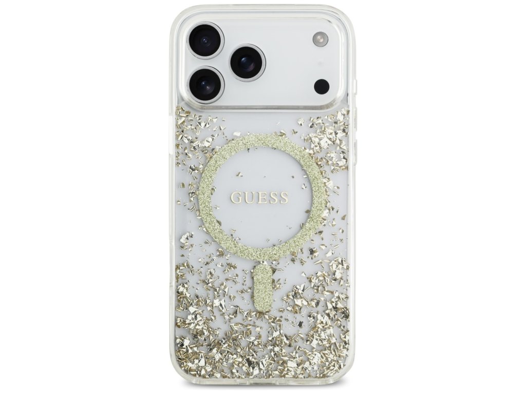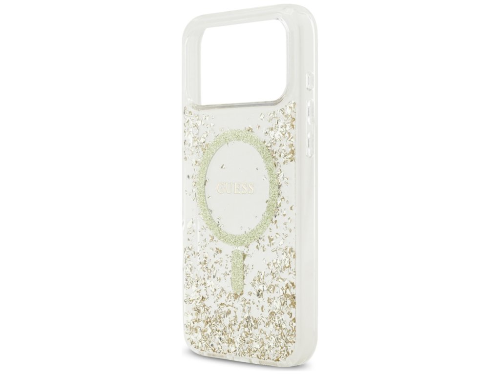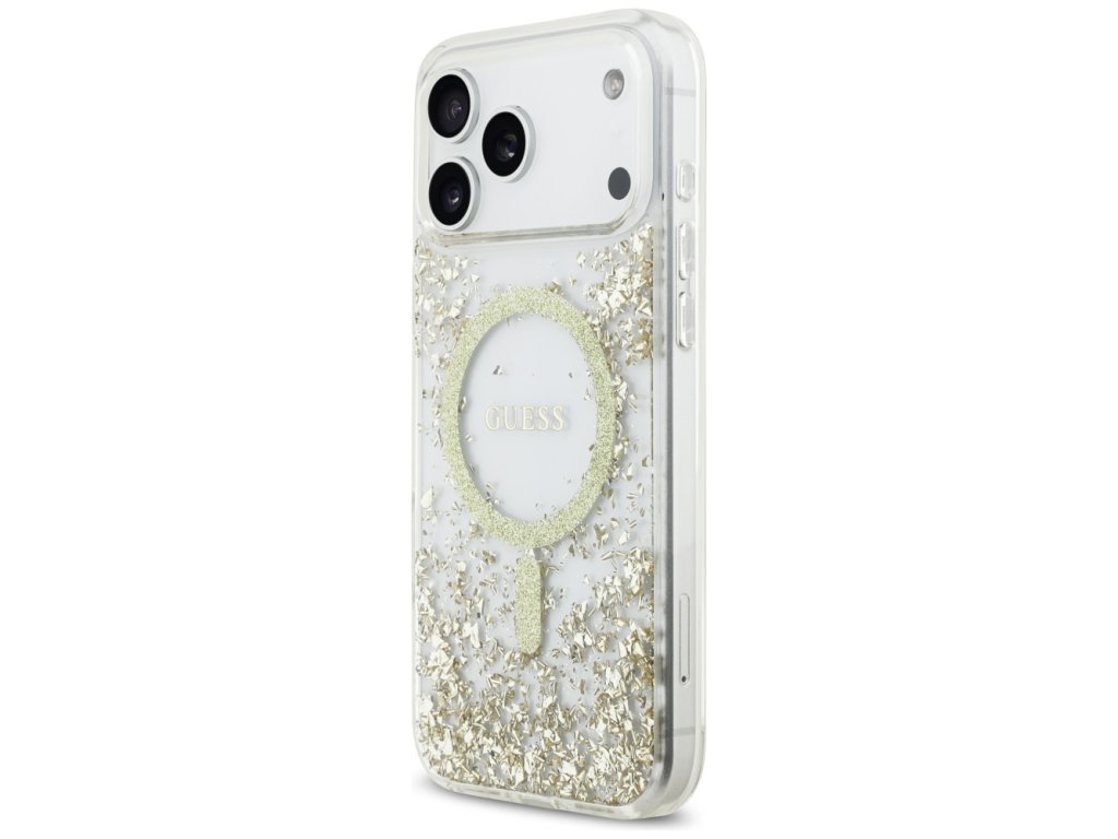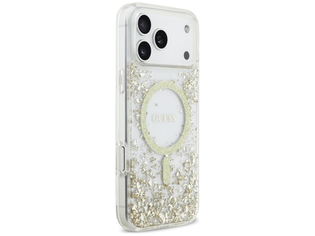 Guess - Resin Bottom Glitter MagSafe puzdro pre iPhone 17 Pro Max - zlaté