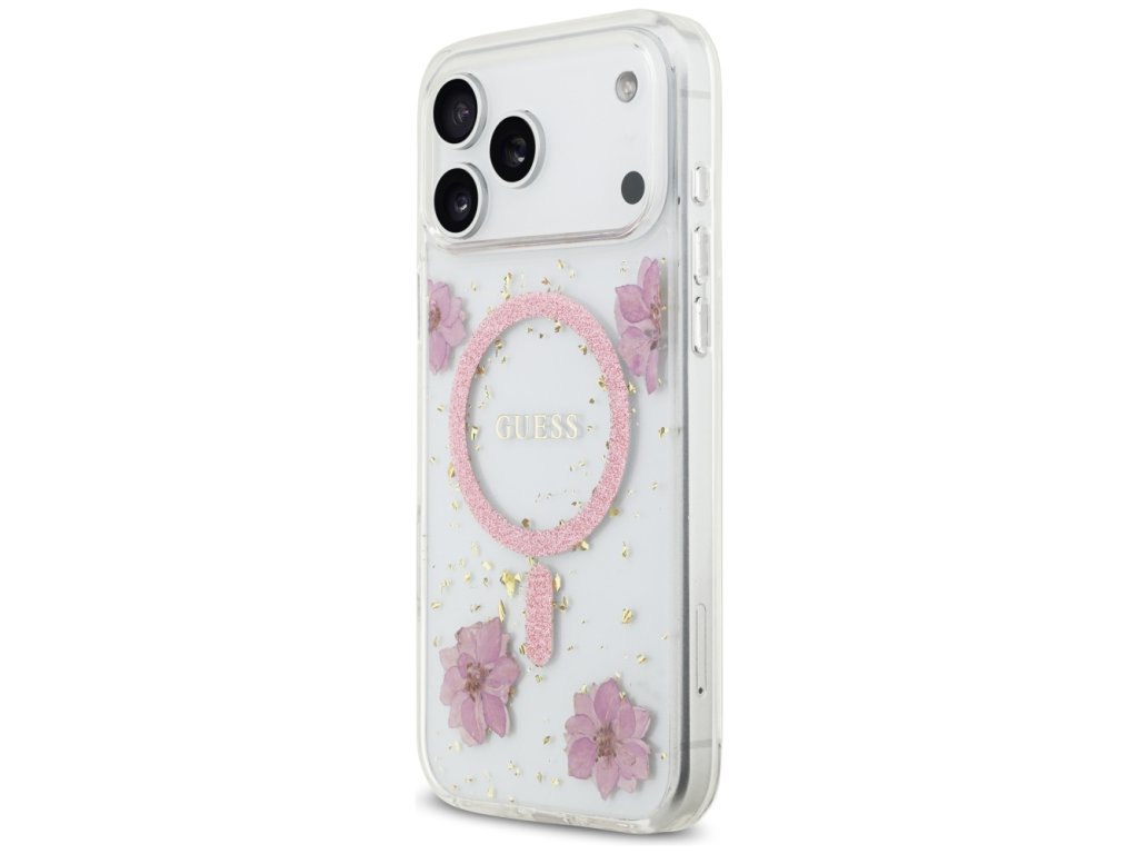Guess - Resin Flowers and Glitter MagSafe (GUHMP17LRBFGFGMP) - iPhone 17 Pro - Pink