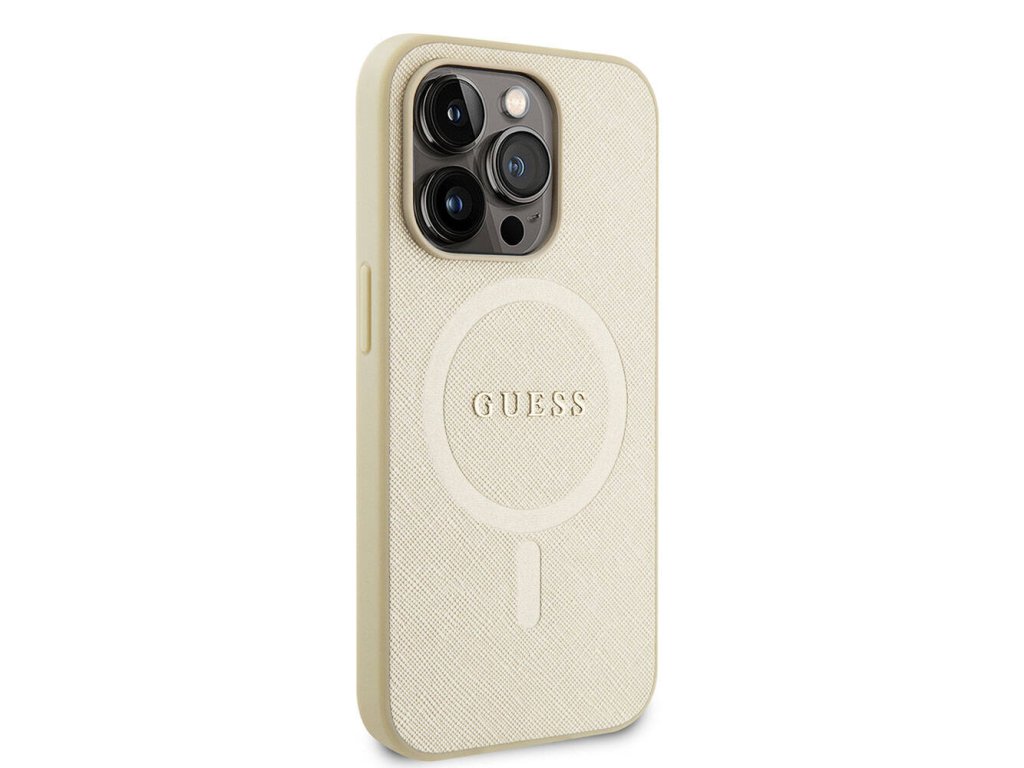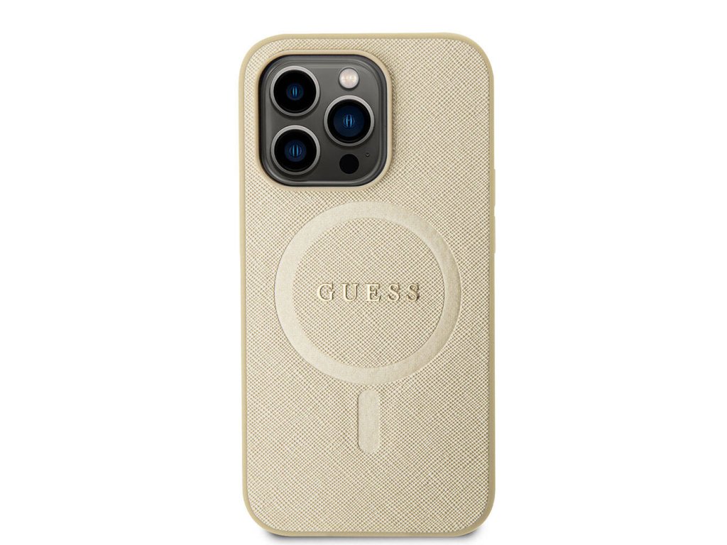 Guess Saffiano MagSafe kryt na iPhone 15 Pro Max (GUHMP15XPSAHMCB) - zlatý
