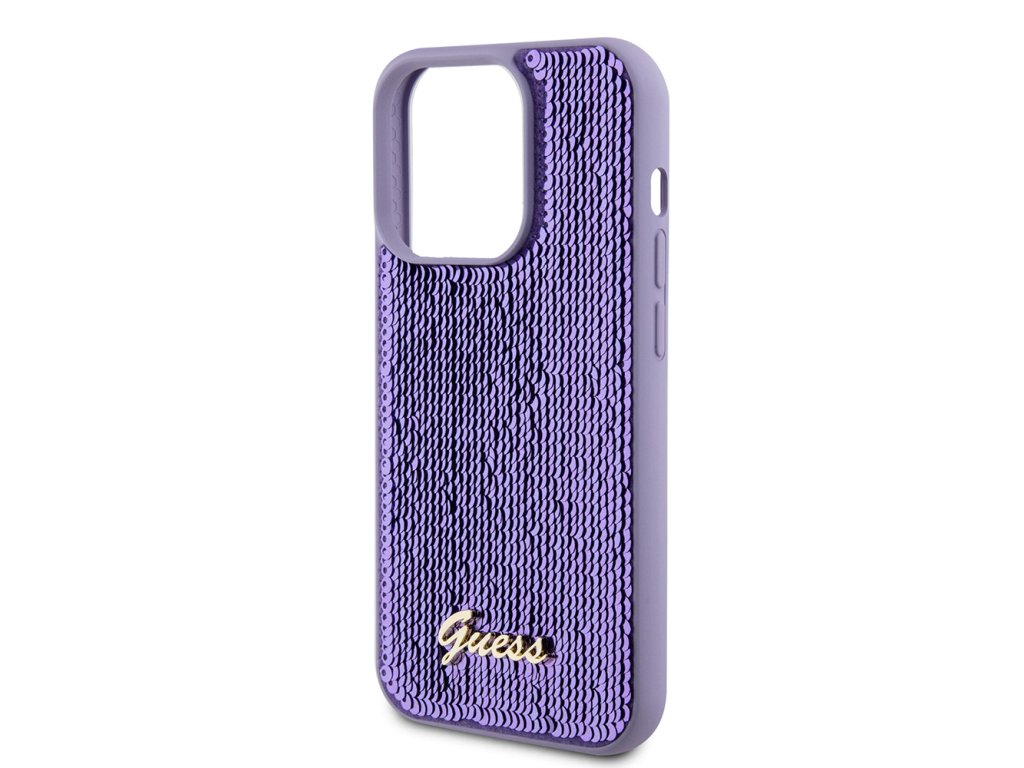 Guess Sequin Script Metal kryt na iPhone 15 Pro (GUHCP15LPSFDGSU) - fialový
