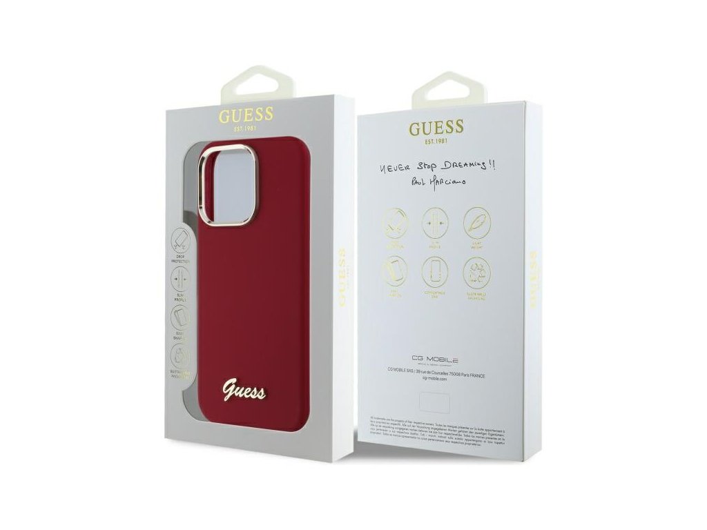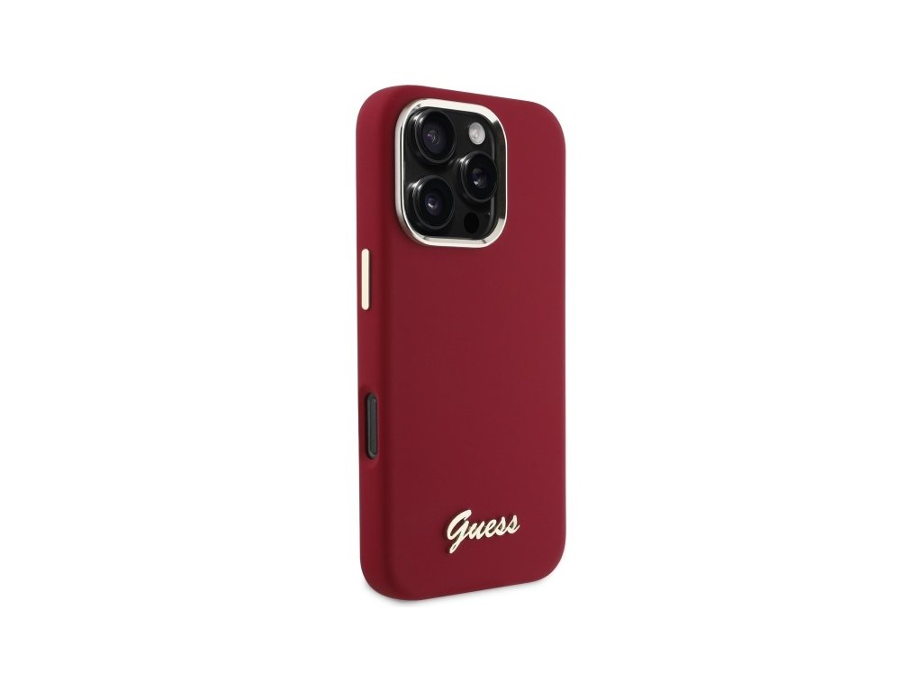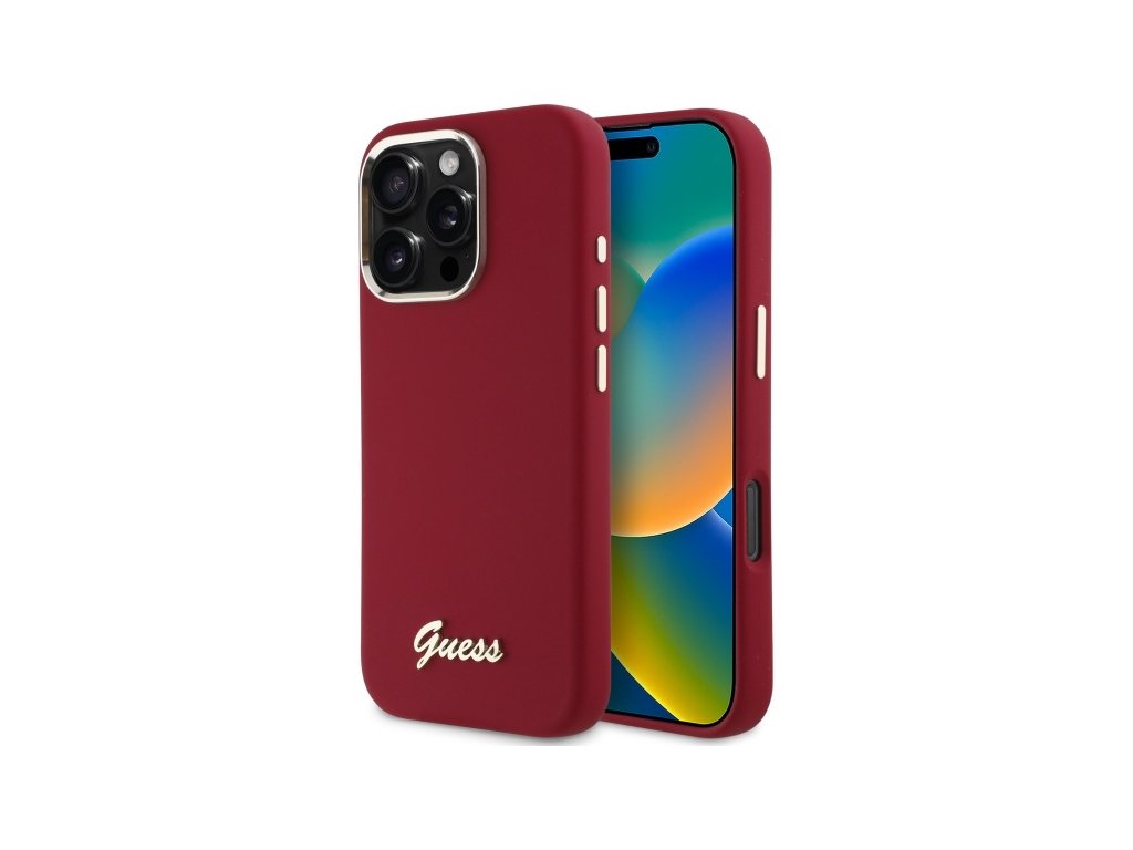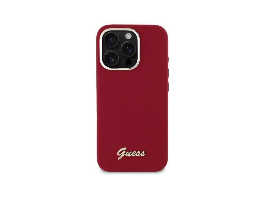 Guess silikónový kryt s kovovým logom Script na iPhone 16 Pro (GUHCP16LSMBSLM) - červený