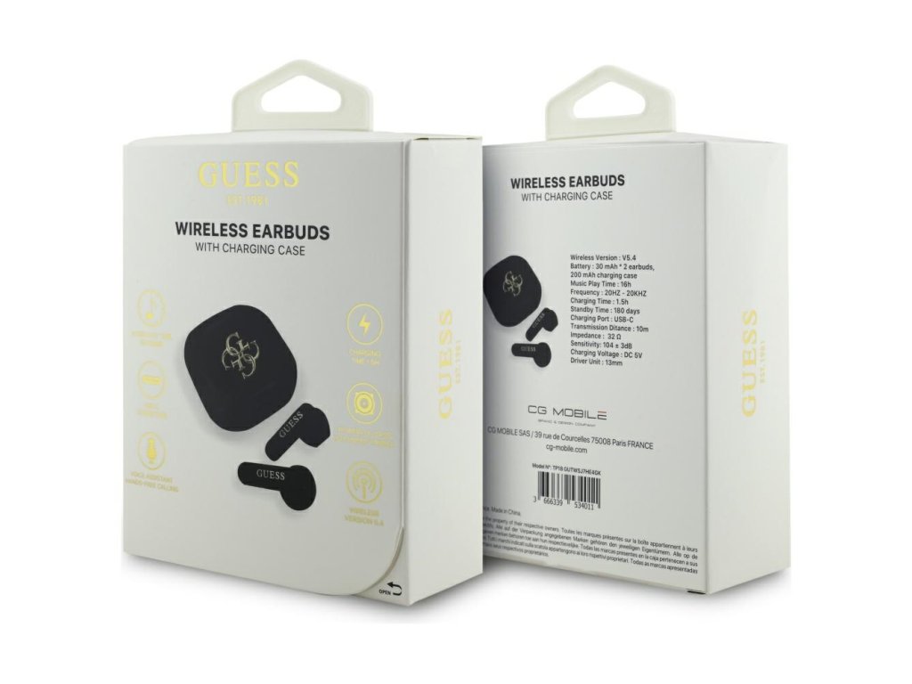 Guess - Wireless Earbuds 4G Metal Logo (GUTWSJ7HE4GH) - Bluetooth, True Wireless Stereo, USB-C, In-ear - White