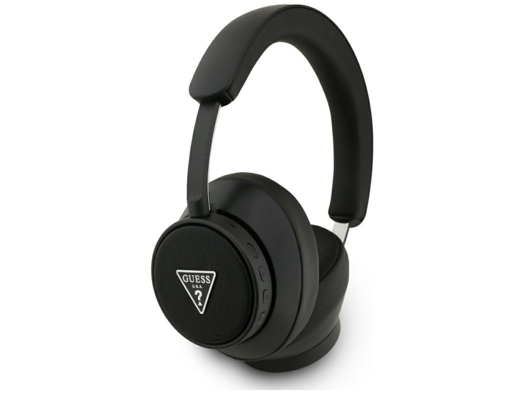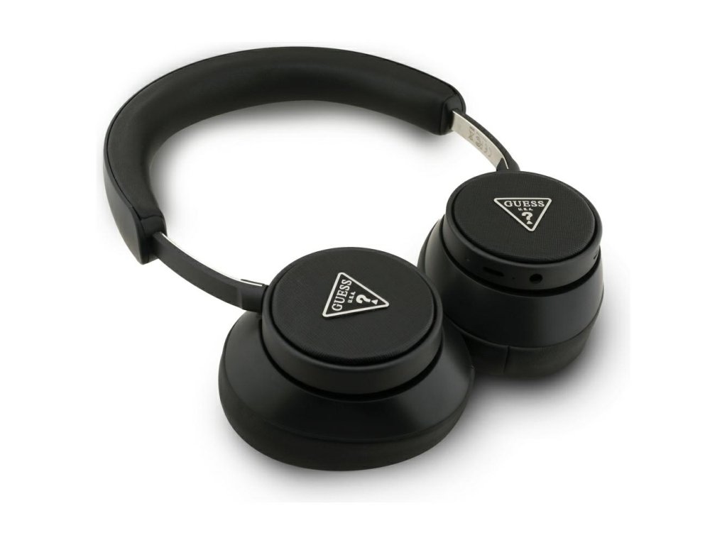 Guess - Wireless Headphones Saffiano Triangle Logo bezdrôtové slúchadlá (Bluetooth, ENC, on-ear, eko koža) - čierne