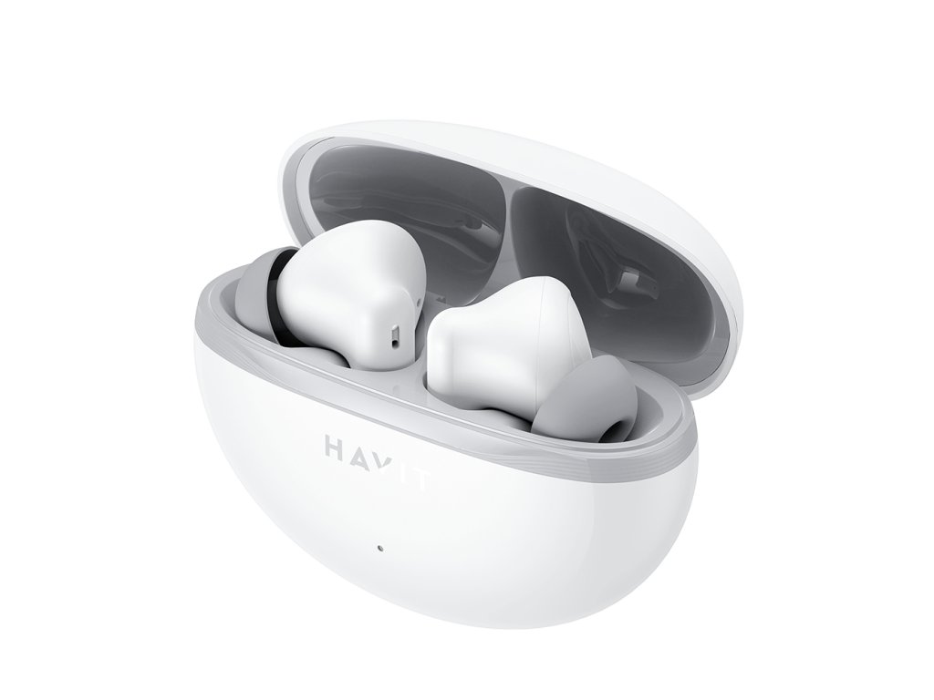 Havit bezdrôtové slúchadlá (TW986) – TWS, Bluetooth 5.4, mikrofón, ENC, USB-C, 400mAh, biele