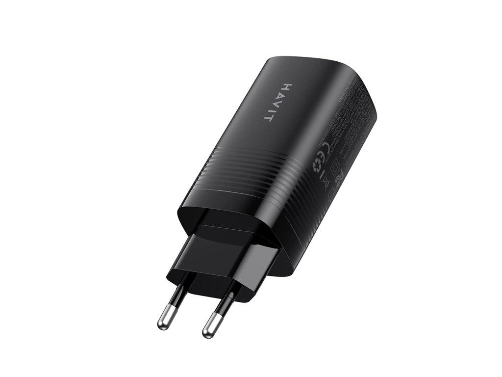 Havit - Wall Charger UC20 EU sieťová nabíjačka (2× USB-C, USB, GaN technológia, 65W, rýchlonabíjanie) - čierna