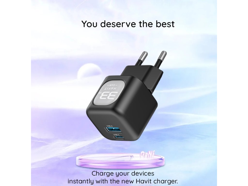 Havit - Wall Charger UC230 EU sieťová nabíjačka (USB-C, USB, 33W) - čierno-sivá