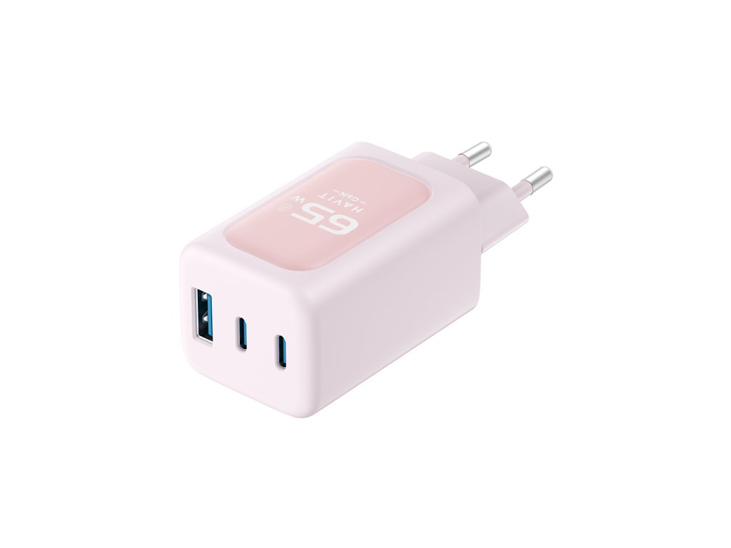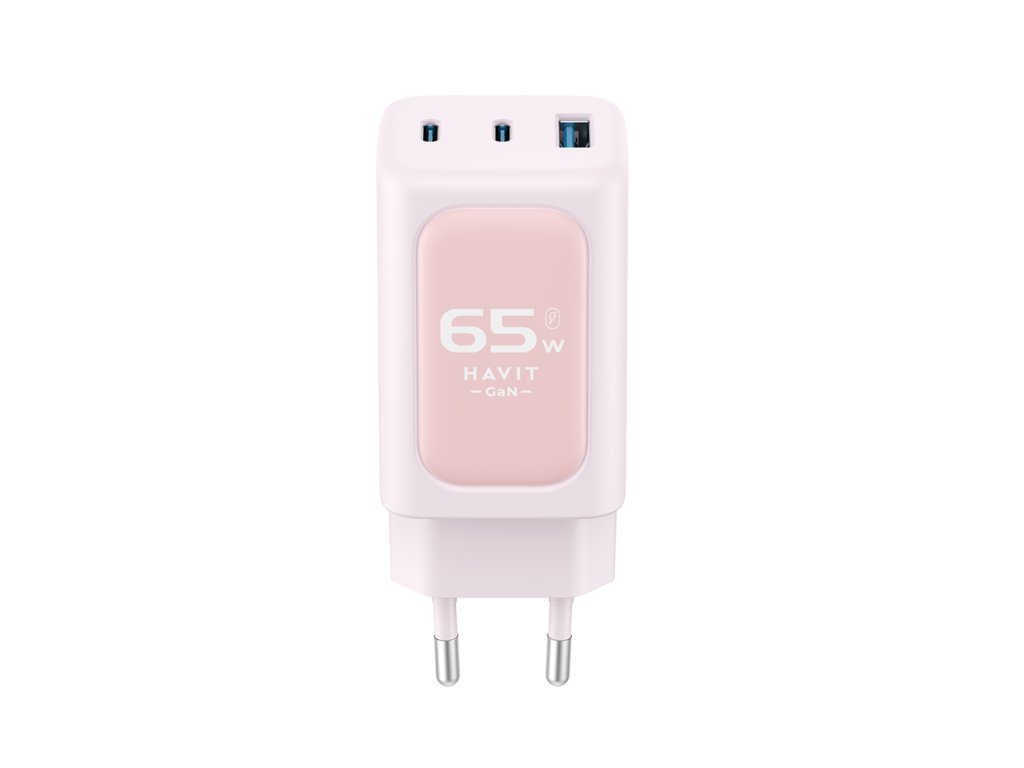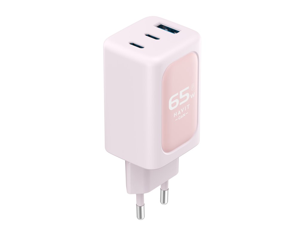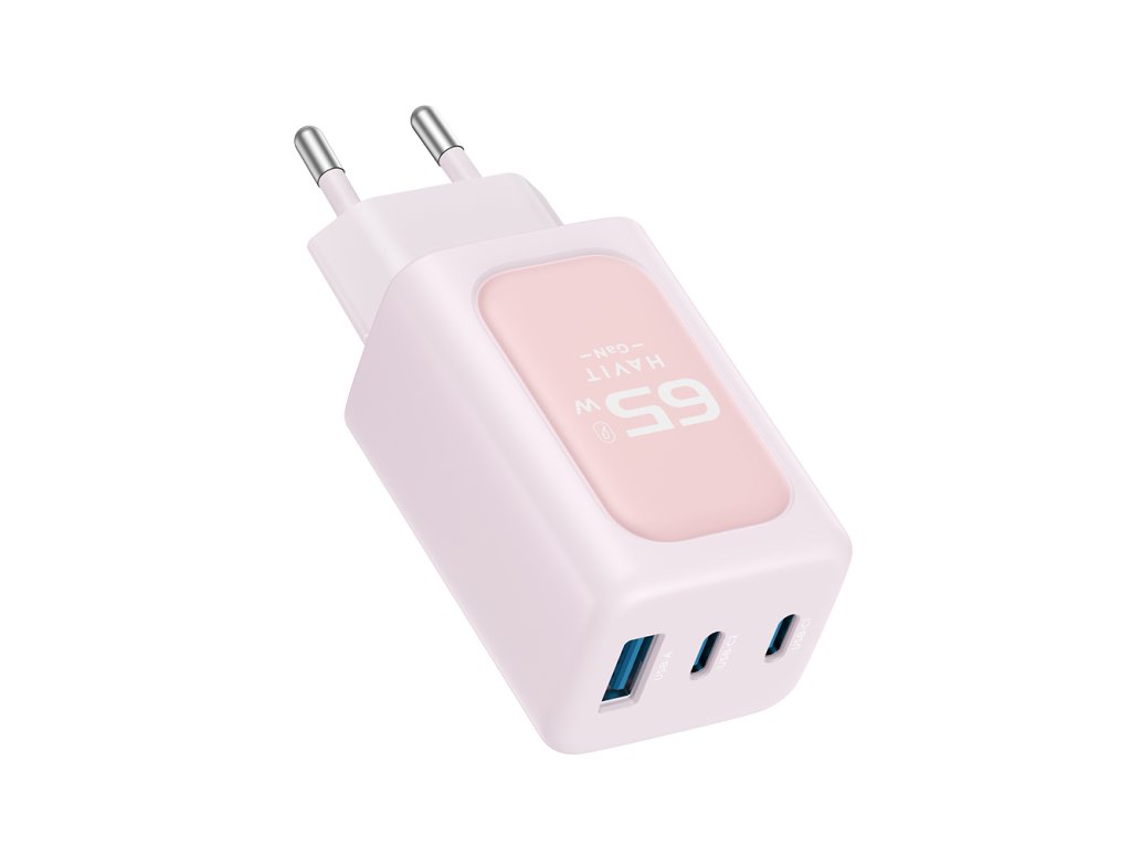 Havit - Wall Charger UC260 EU sieťová nabíjačka (2× USB-C, USB, 65W) - ružová