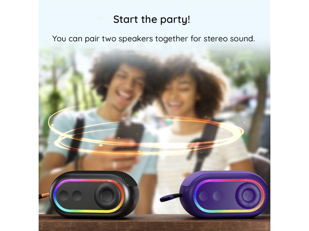 Havit - Wireless Speaker (SK809BT) - USB-C, Bluetooth 5.3, TWS, TF, USB, FM, AUX, Hands-Free Call, RGB, IPX5, 1200mAh - Black