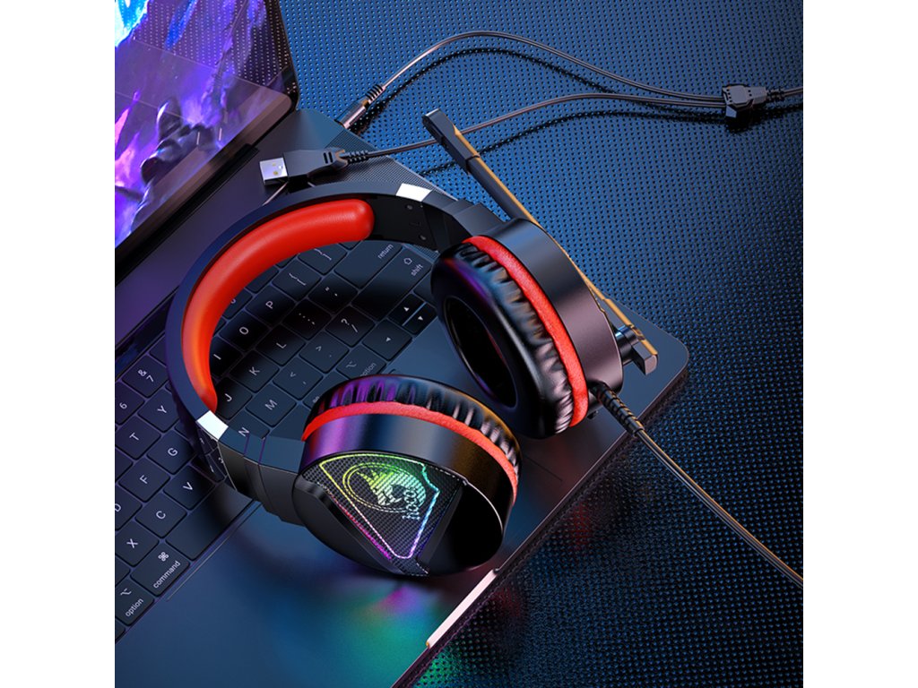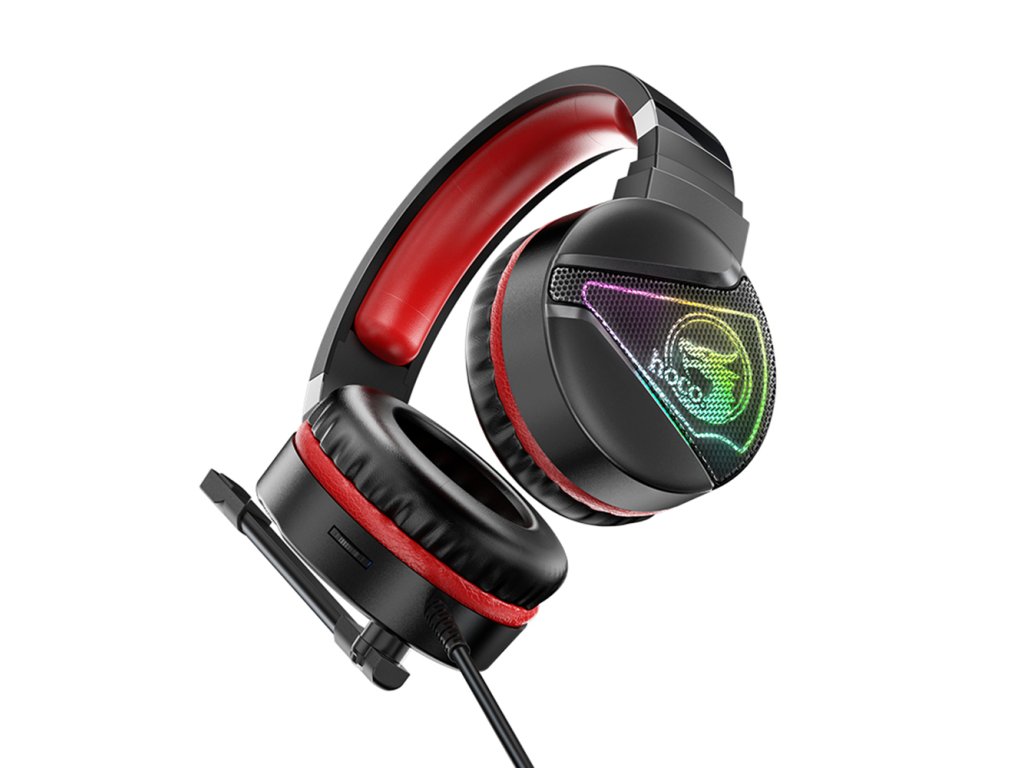 Hoco Káblové slúchadlá (W104) - na hranie hier, Jack 3,5 mm s mikrofónom, Jack, USB - červené