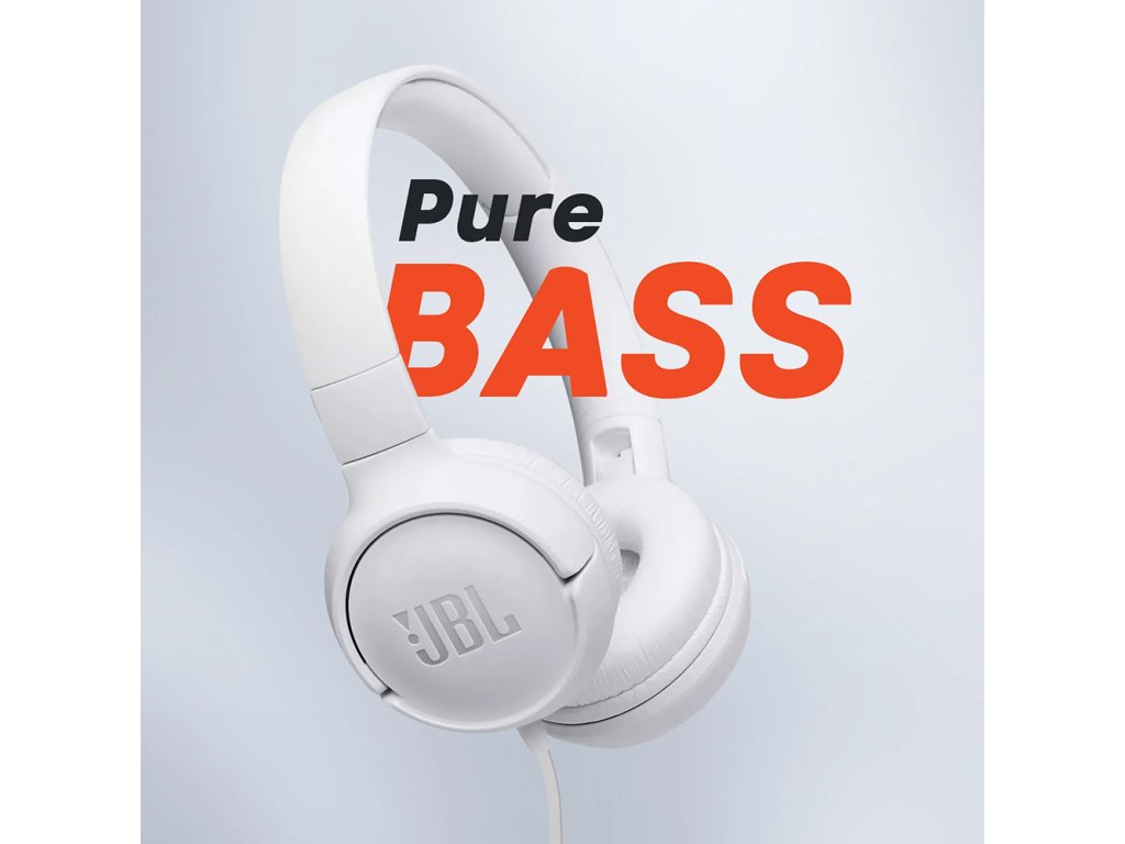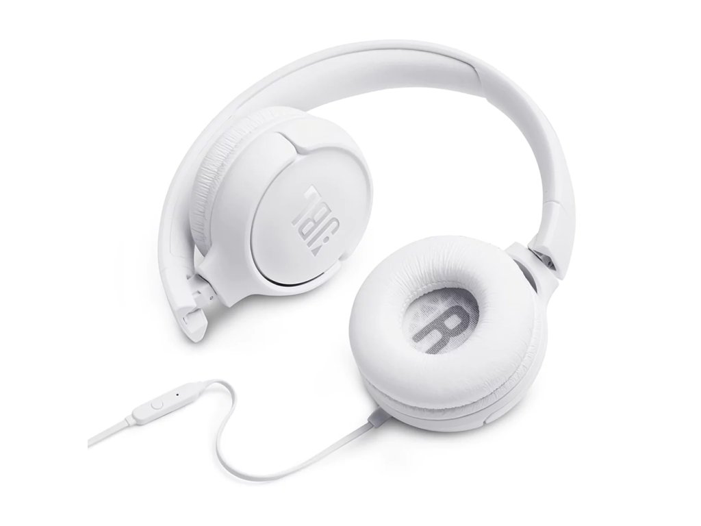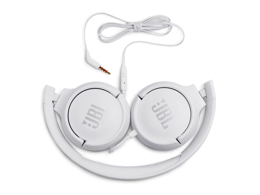 JBL – Tune 500 káblové slúchadlá s funkciou Pure Bass, skladací dizajn, 3,5 mm jack – biele