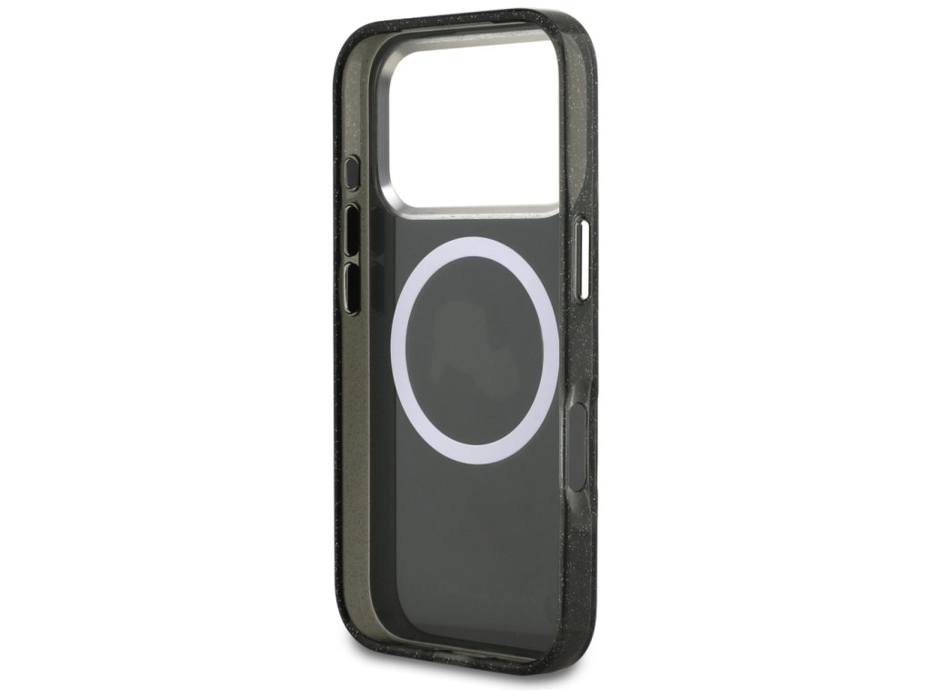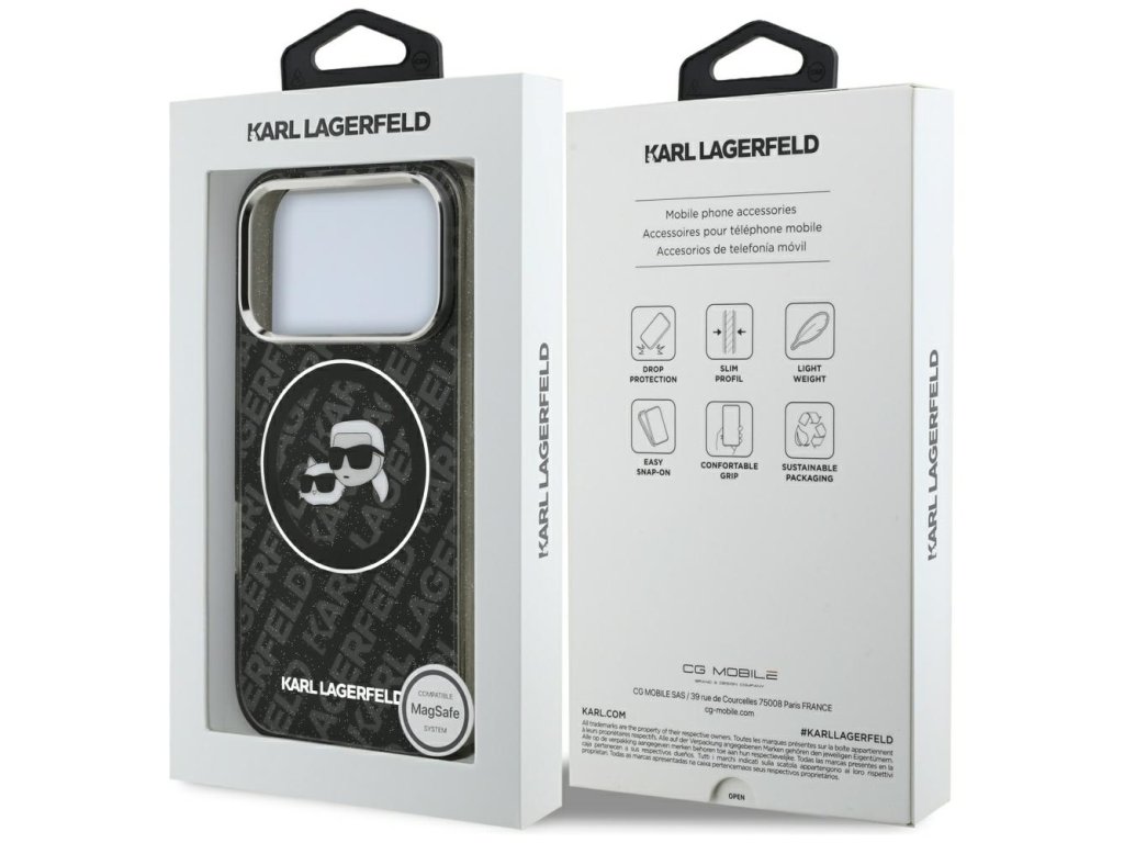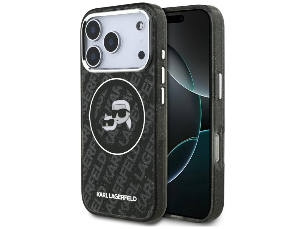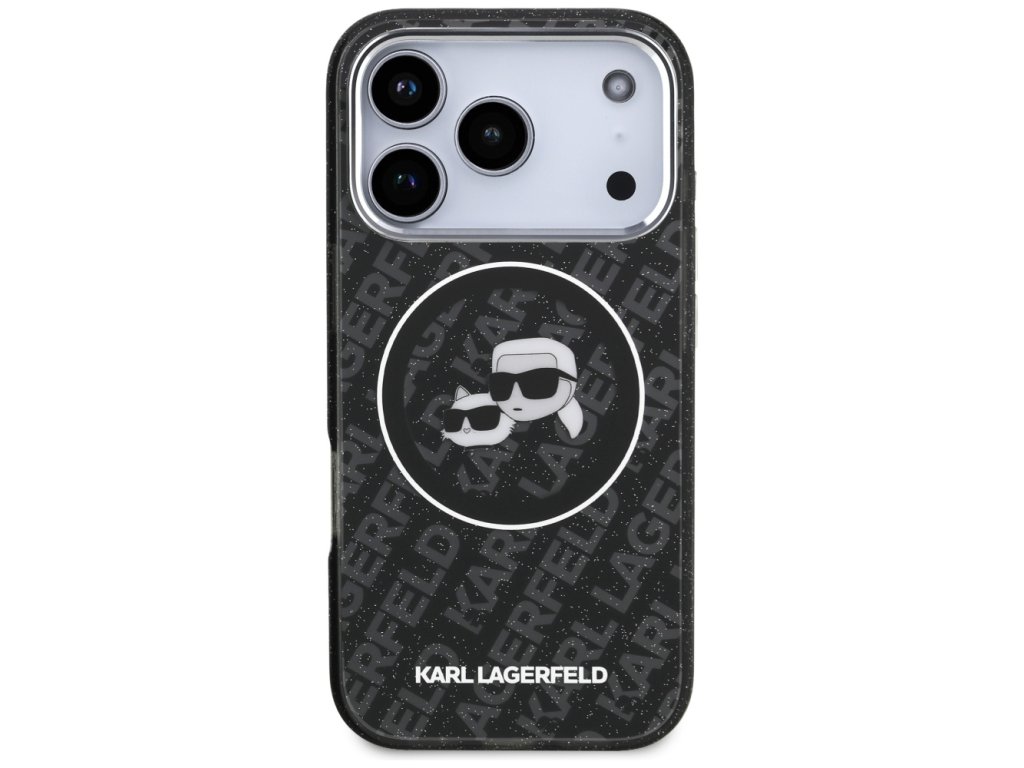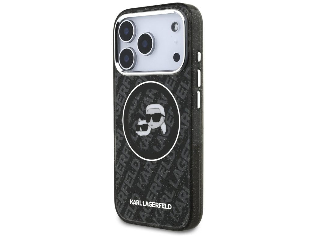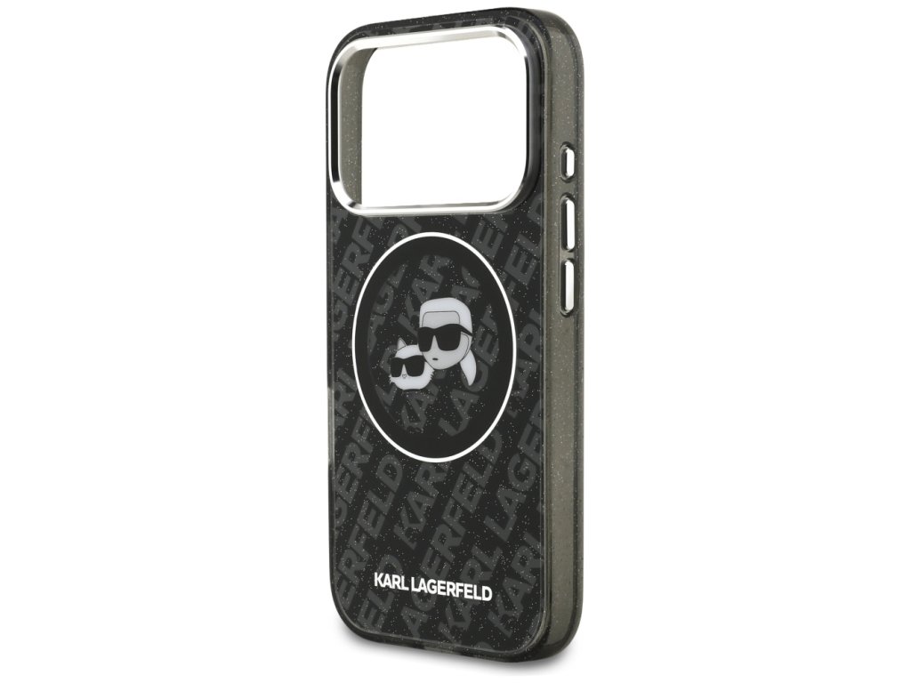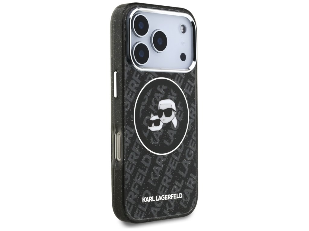 Karl Lagerfeld – Glitter MagSafe obal na iPhone 17 Pro – čierny Karl & Choupette Head