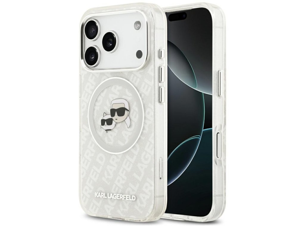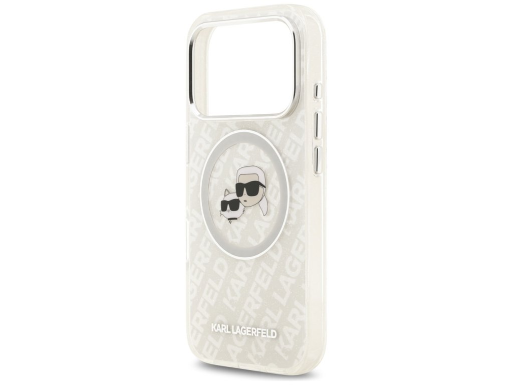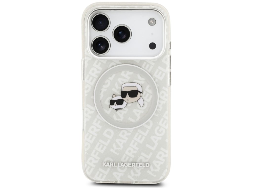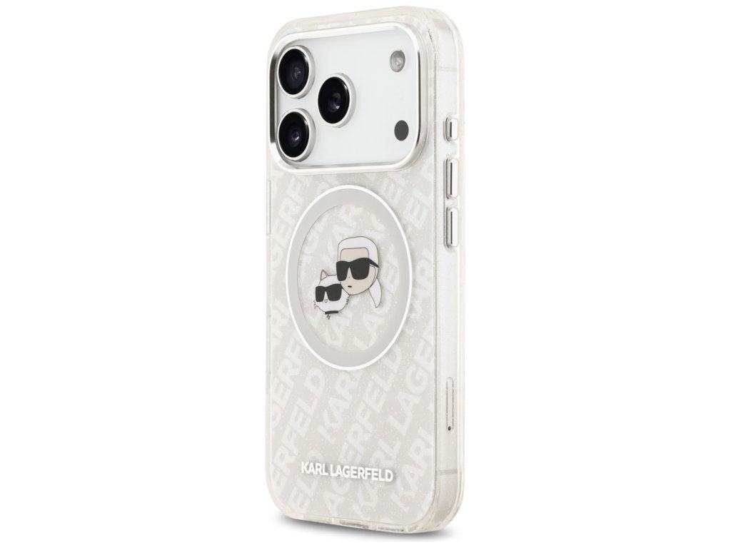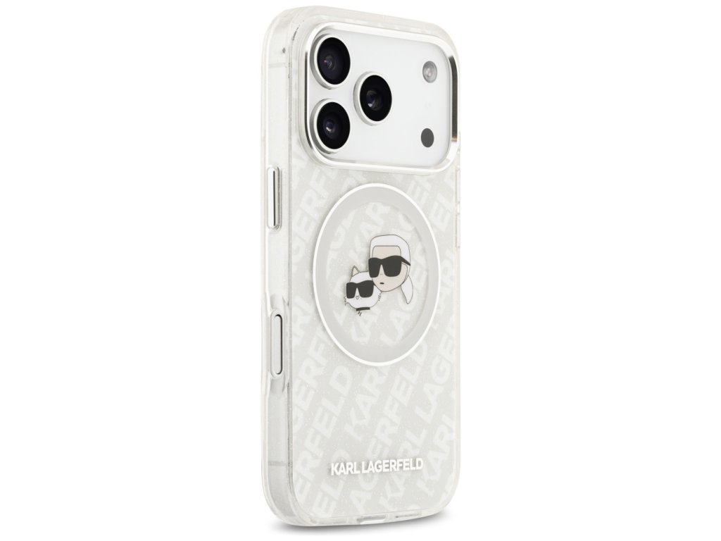 Karl Lagerfeld – Glitter MagSafe obal na iPhone 17 Pro Max – biely Karl & Choupette Head