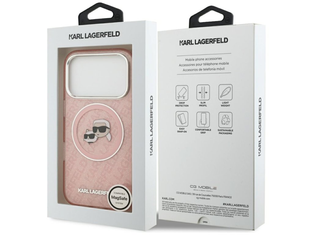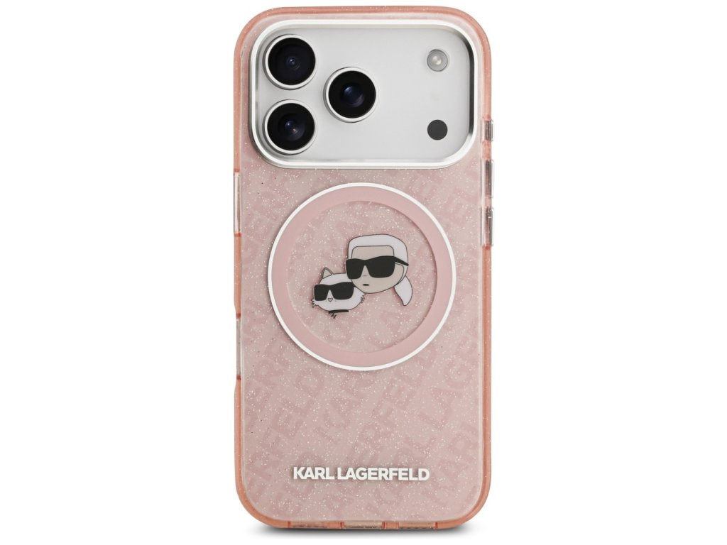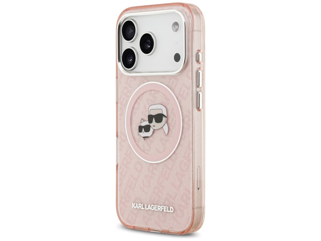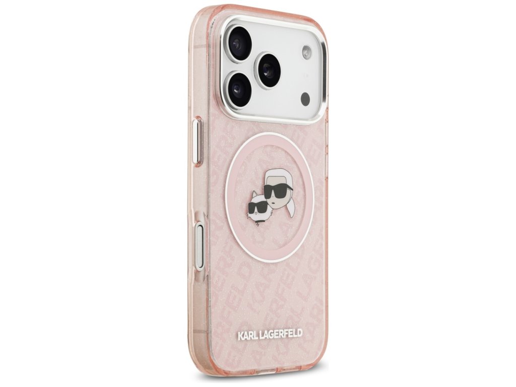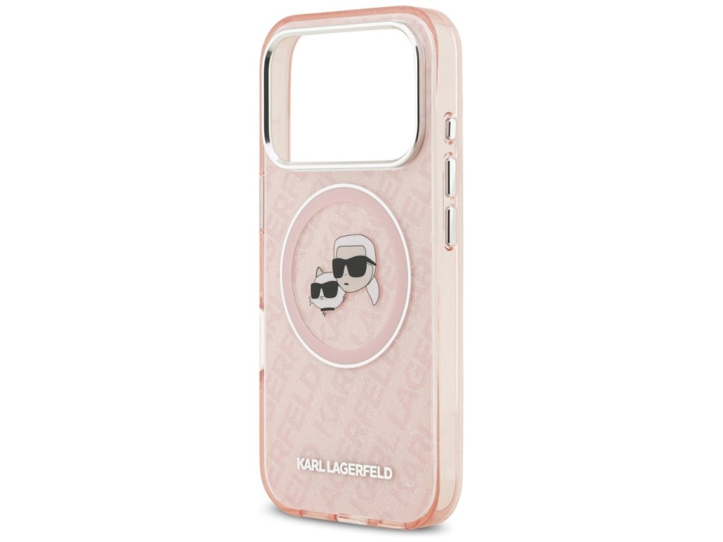 Karl Lagerfeld – Glitter MagSafe obal na iPhone 17 Pro Max – ružový Karl & Choupette Head