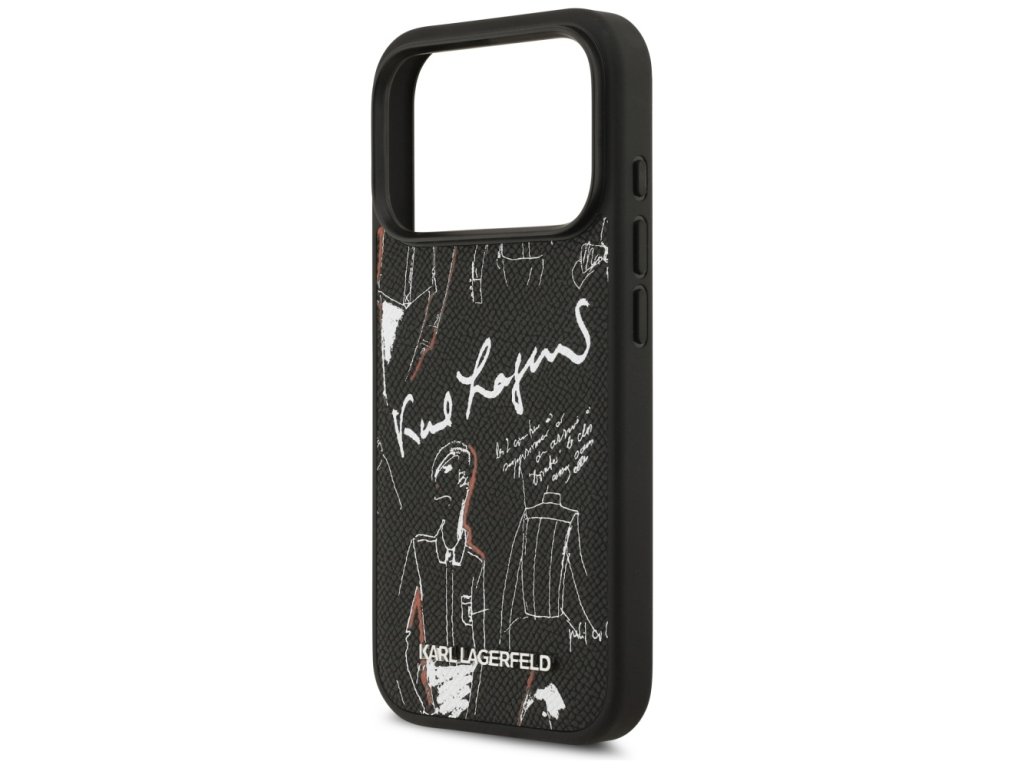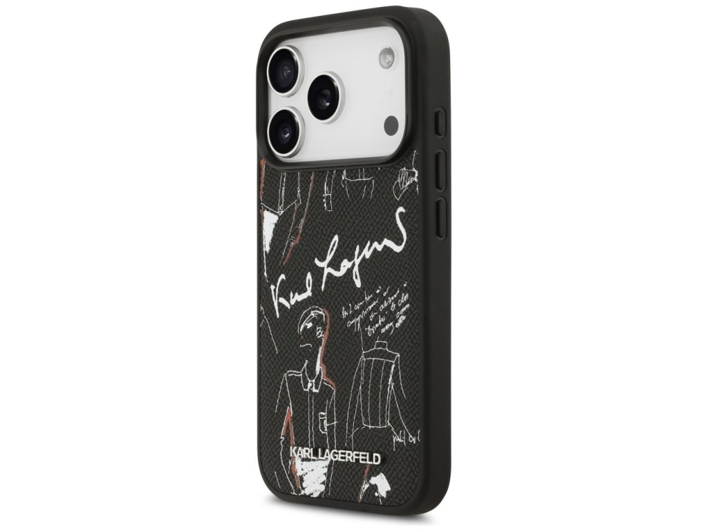 Karl Lagerfeld – Hardcase Grained Pattern Logo obal na iPhone 17 Pro – čierny