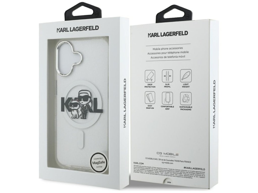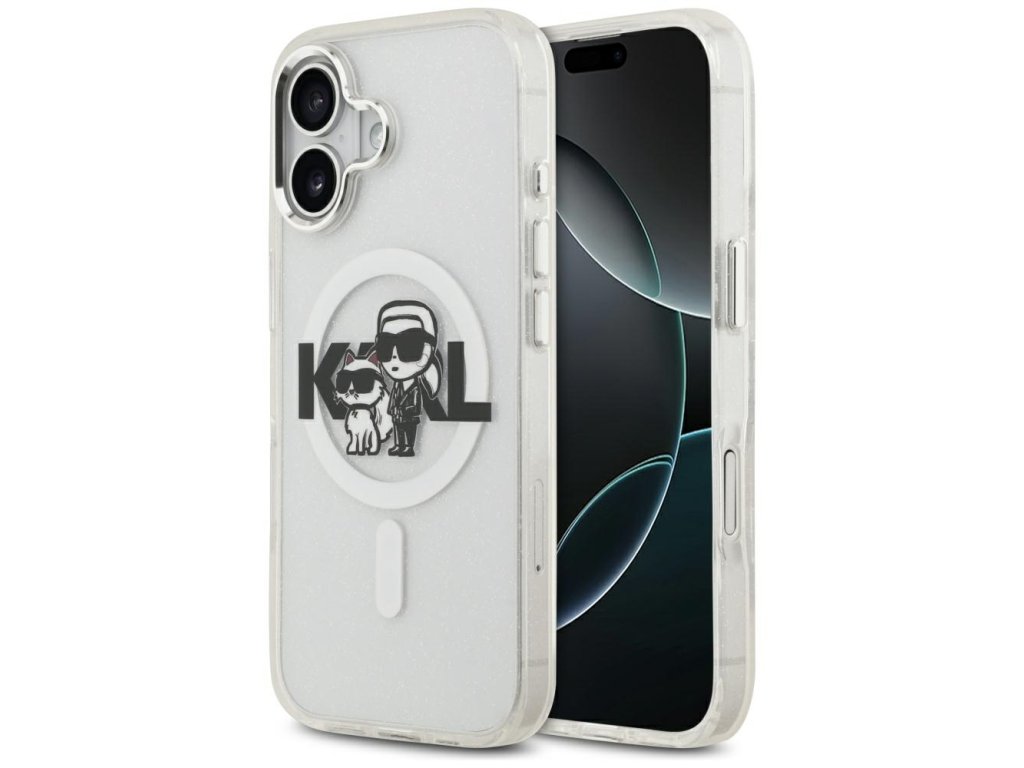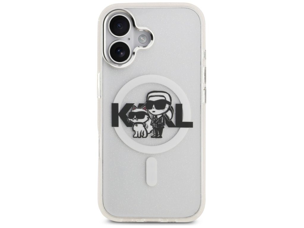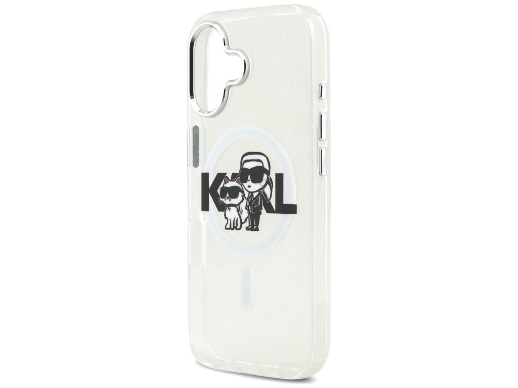 Karl Lagerfeld – IML Glitter Karl & Choupette Sketch Logo MagSafe obal na iPhone 17 – priehľadný