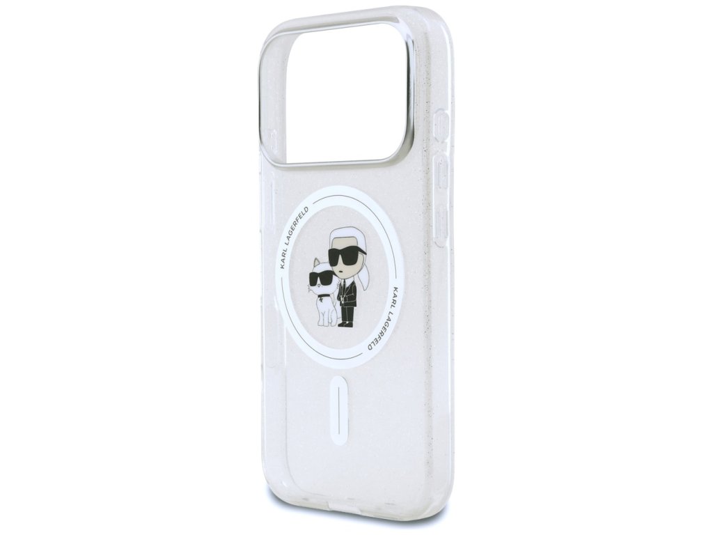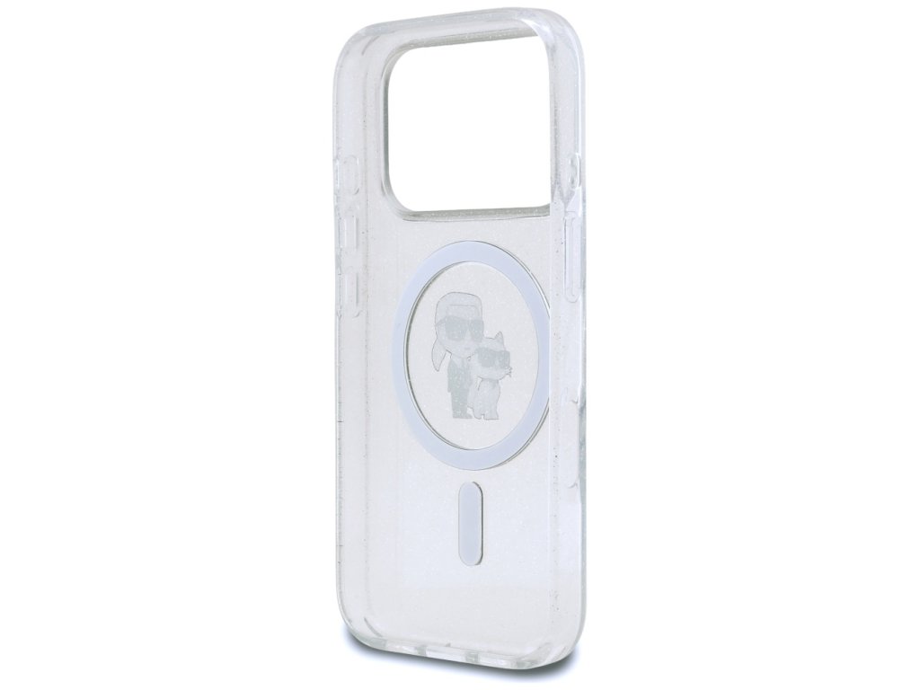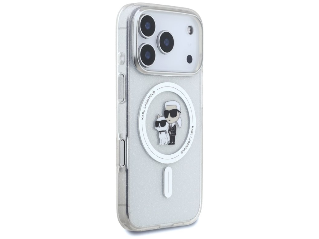 Karl Lagerfeld – IML Karl Choupette Glitter MagSafe obal na iPhone 17 Pro – priehľadný