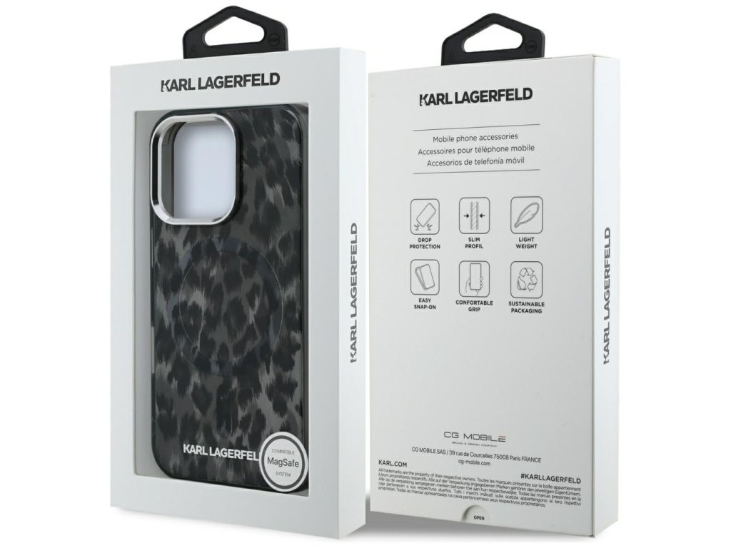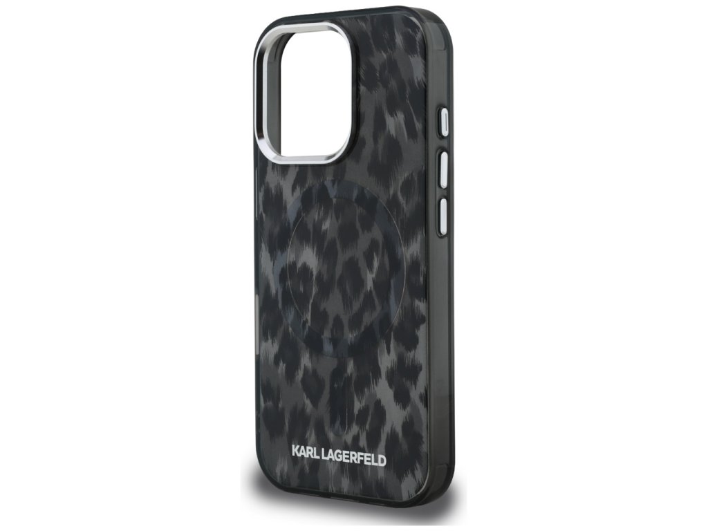 Karl Lagerfeld – IML Leopard Pattern MagSafe pevné puzdro pre iPhone 16 Pro Max – čierne
