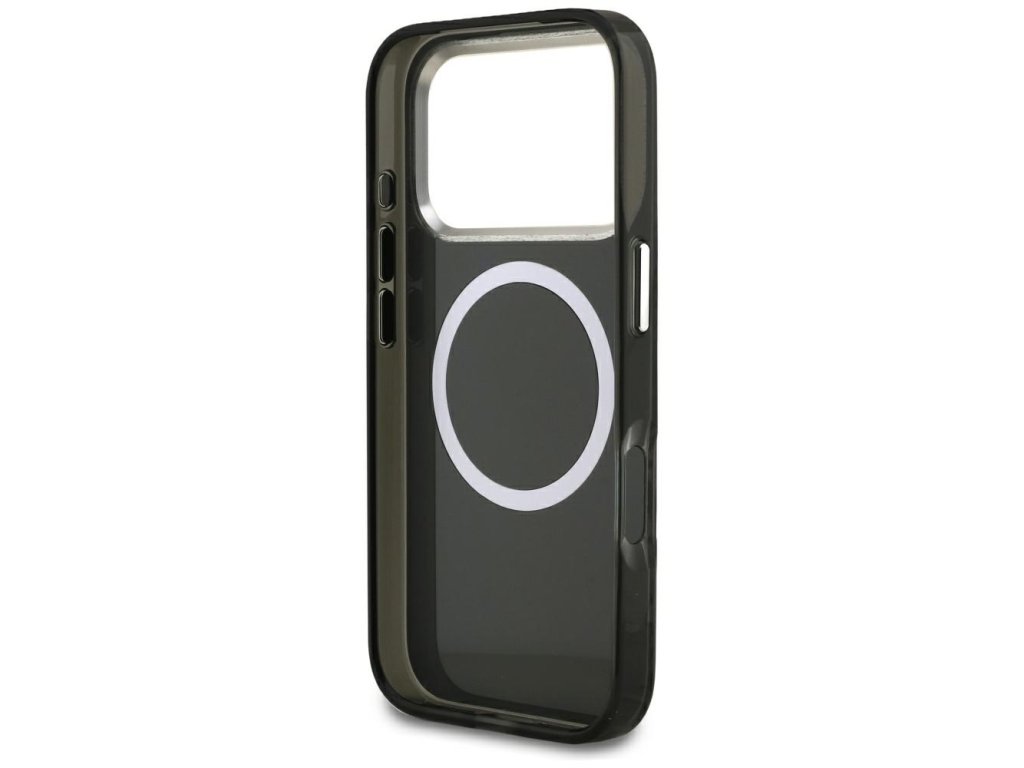 Krúžok MagSafe uľahčuje bezdrôtové nabíjanie a robí z puzdra iPhone 17 Pro Karl Lagerfeld moderný kontúrový prvok, reprezentatívny pre naše dni plné technológie.