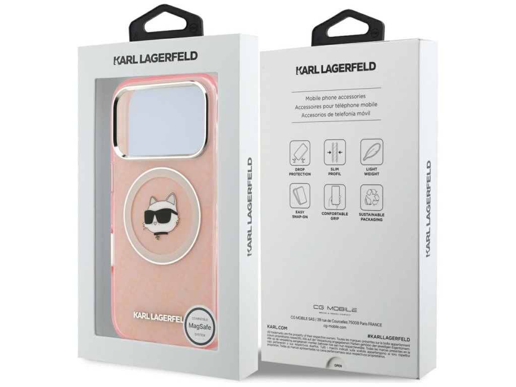 Karl Lagerfeld – IML MagSafe obal na iPhone 17 Pro Max – ružový Choupette`s Head