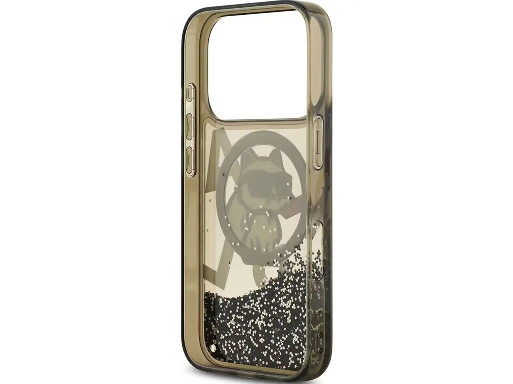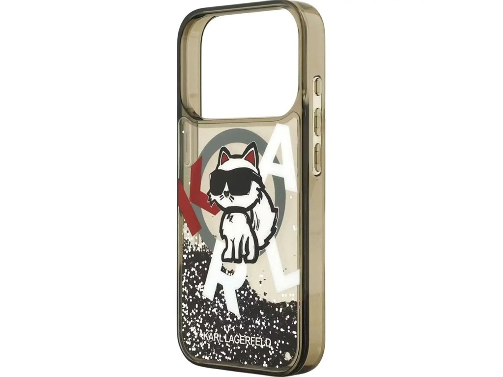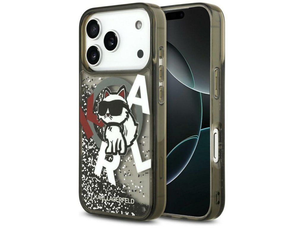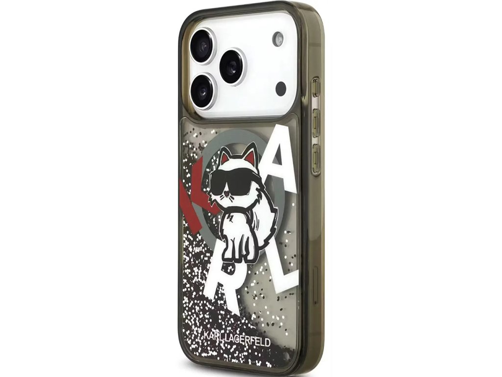 Karl Lagerfeld – Liquid Glitter Choupette Logo MagSafe obal na iPhone 17 Pro Max – čierny