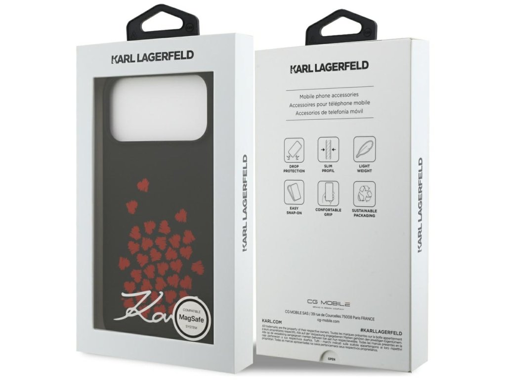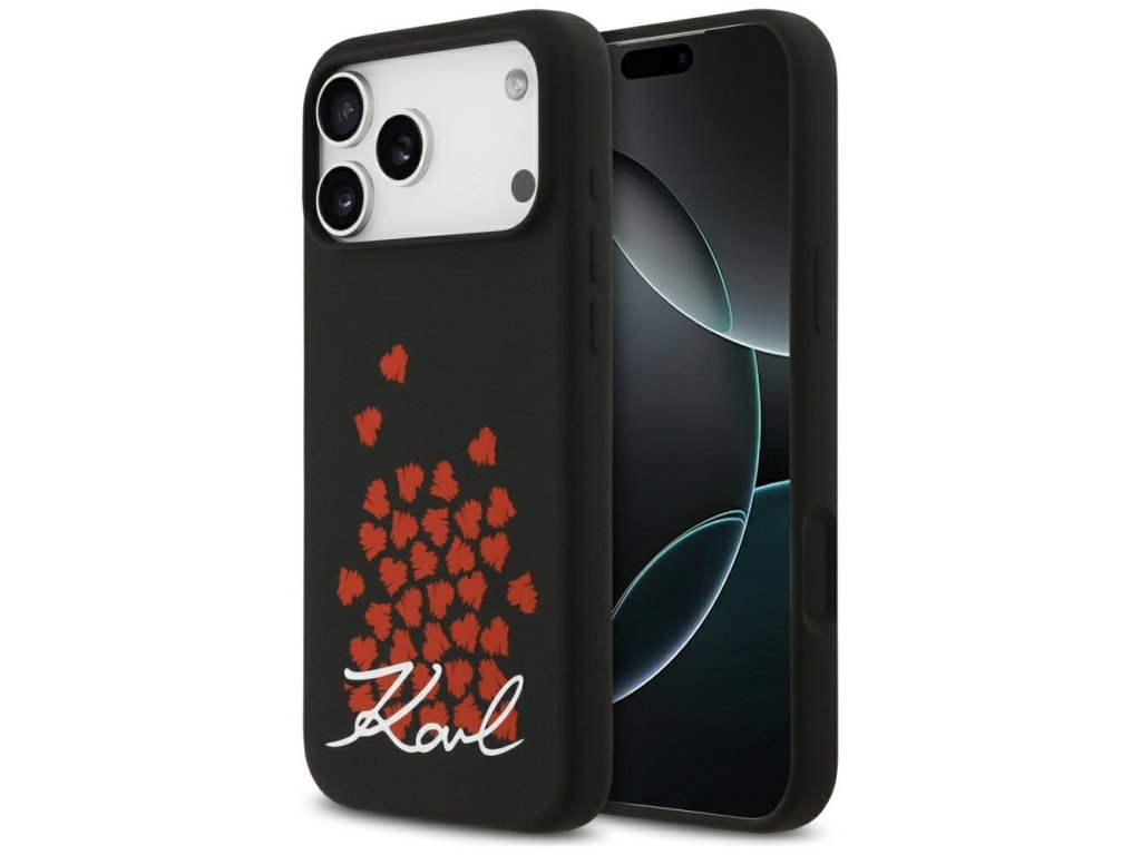 Karl Lagerfeld – Silicone Heart Sign Logo MagSafe obal na iPhone 17 Pro Max – čierny