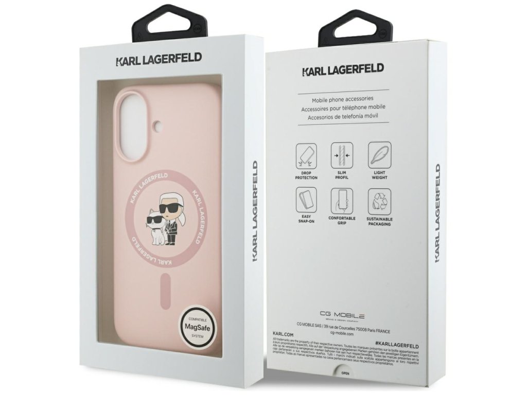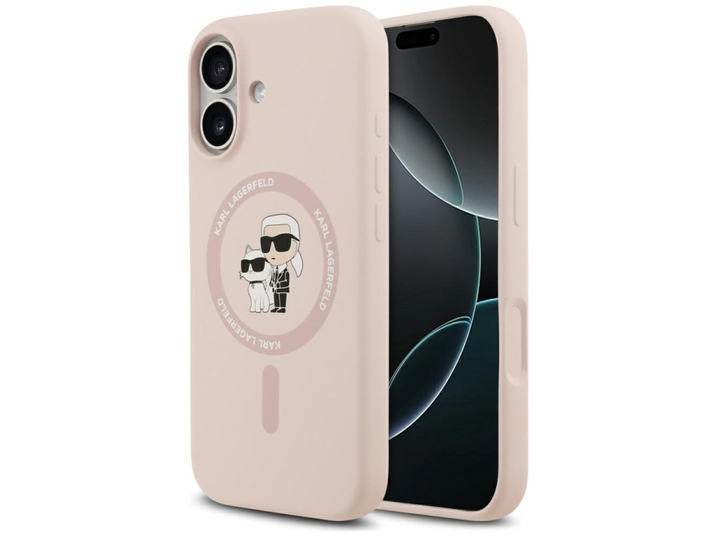 Karl Lagerfeld – Silicone Ring MagSafe obal na iPhone 17 – ružový Karl & Choupette